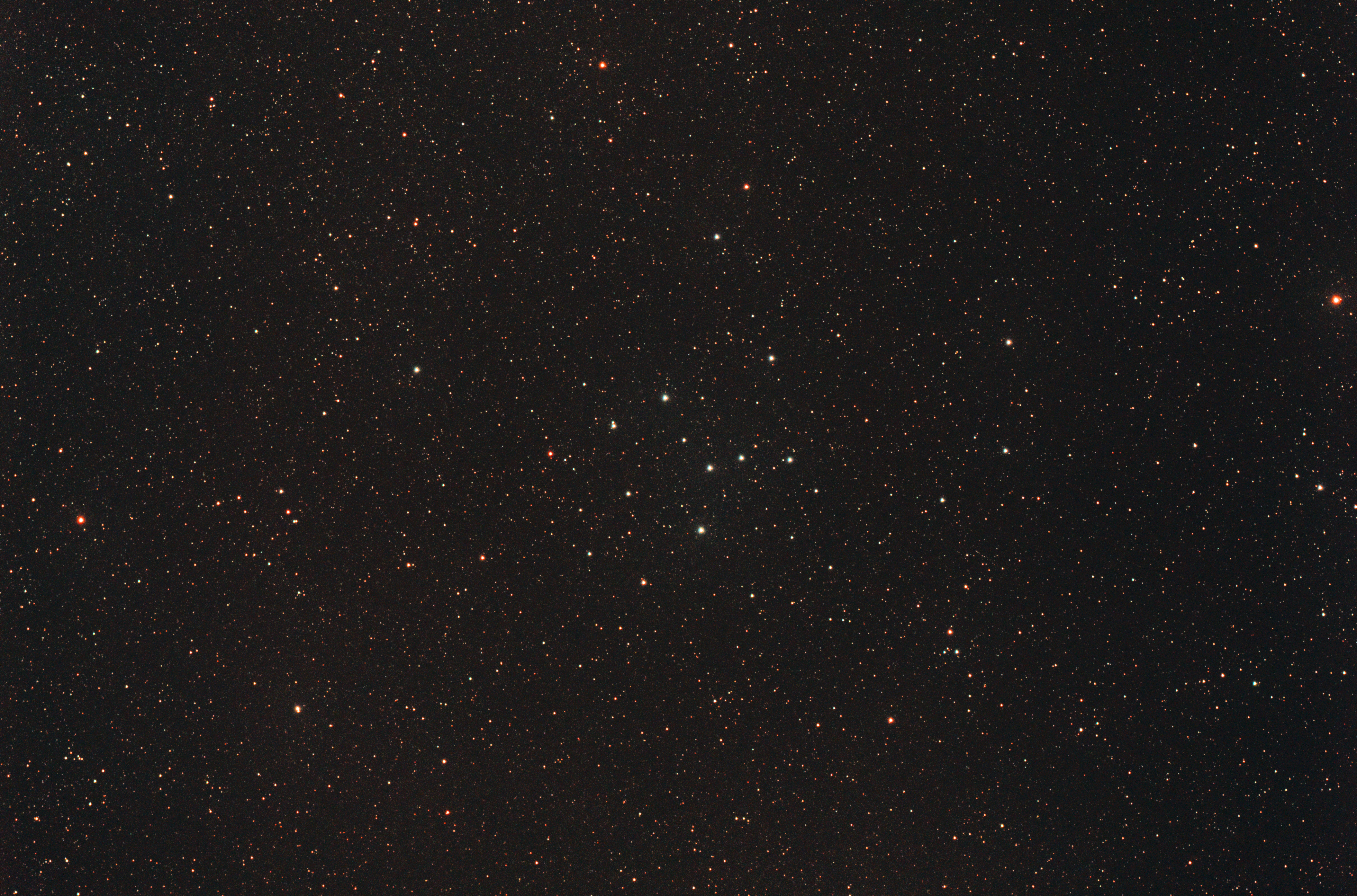 Dank der letzten klaren Septembernächte hatte ich auch noch Gelegenheit, den recht lockeren offenen Sternhaufen IC 4665 im Schlangenträger aufzunehmen. Dieser Haufen ist vor allem ein optischer Leckerbissen in lichtstarken Feldstechern, die über ein ausreichend großes Gesichtsfeld verfügen, so dass der Haufencharakter schön zur Geltung kommen kann. Bei stärkerer Vergrößerung im Teleskop geht dieser leider verloren …