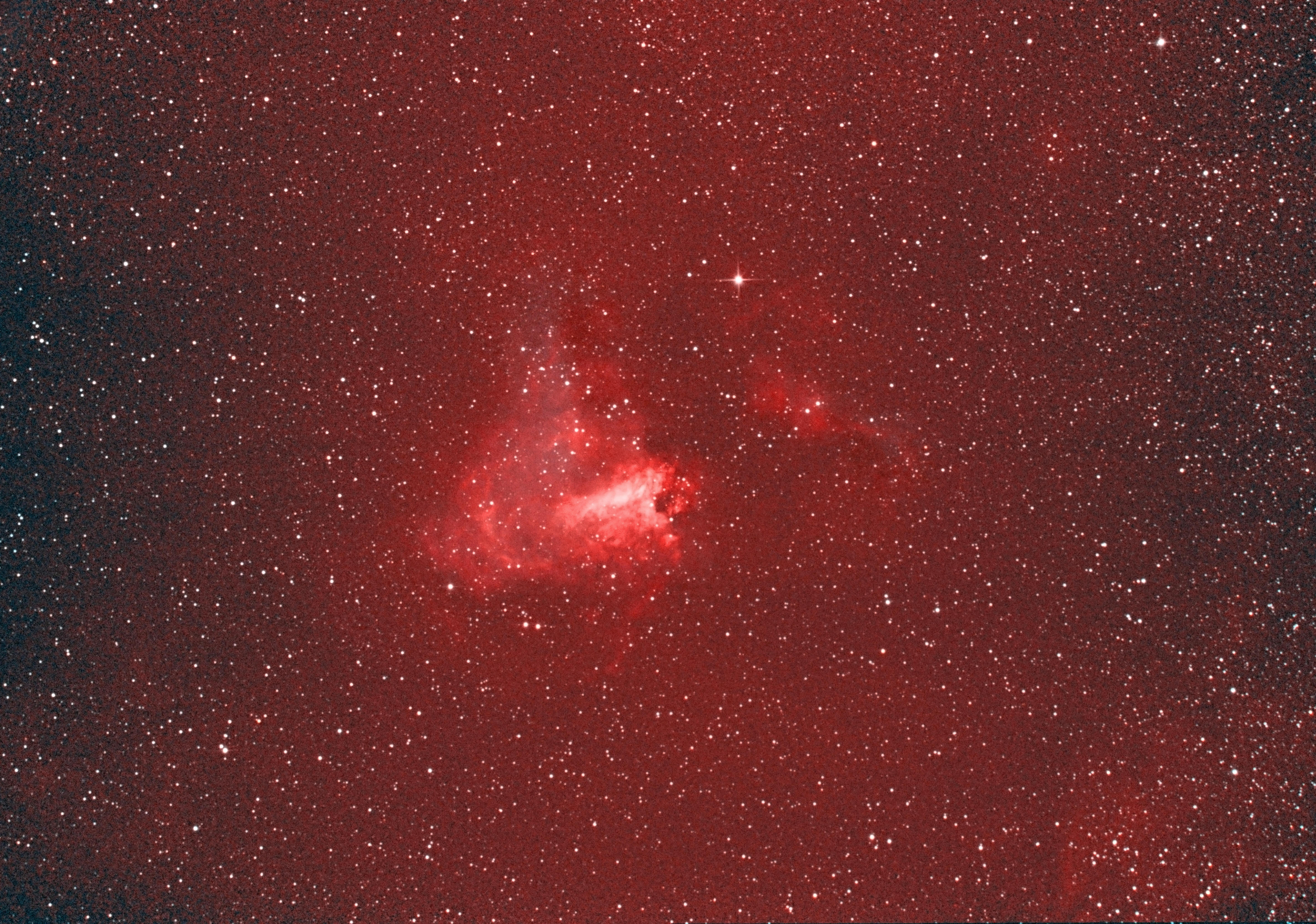 Da die Zeit der hellen Nächte hier im Norden langsam dem Ende zugeht, konnte ich am 18. und 19. Juli 2015 vom heimischen Balkon aus nach längerer Pause wieder einmal astrofotografisch tätig werden. So wagte ich mich an die berühmte H II-Region Messier 17, auch als Omega- oder Schwanennebel bekannt, heran. Dieses Objekt stellt für meinen Balkonstandort eine immense Herausforderung dar, was mich aber nicht entmutigte. Im Zuge der Session konnte ich auch noch mit meinem neuen 12-nm-H-Alpha EOS-Clipfilter von Astronomik erste H Alpha-Daten sammeln, die ich dann via Fitswork in das RGB-Summenbild "einbaute", eine interessante Option. Allerdings kam, wie so oft, wieder einmal viel zu wenig Gesamtbelichtungszeit zusammen, weshalb das Rauschen noch ziemlich stark sichtbar ist. Aufnahmeinstrument war erneut mein kleiner 130/650-mm-PDS-Newton von Skywatcher.