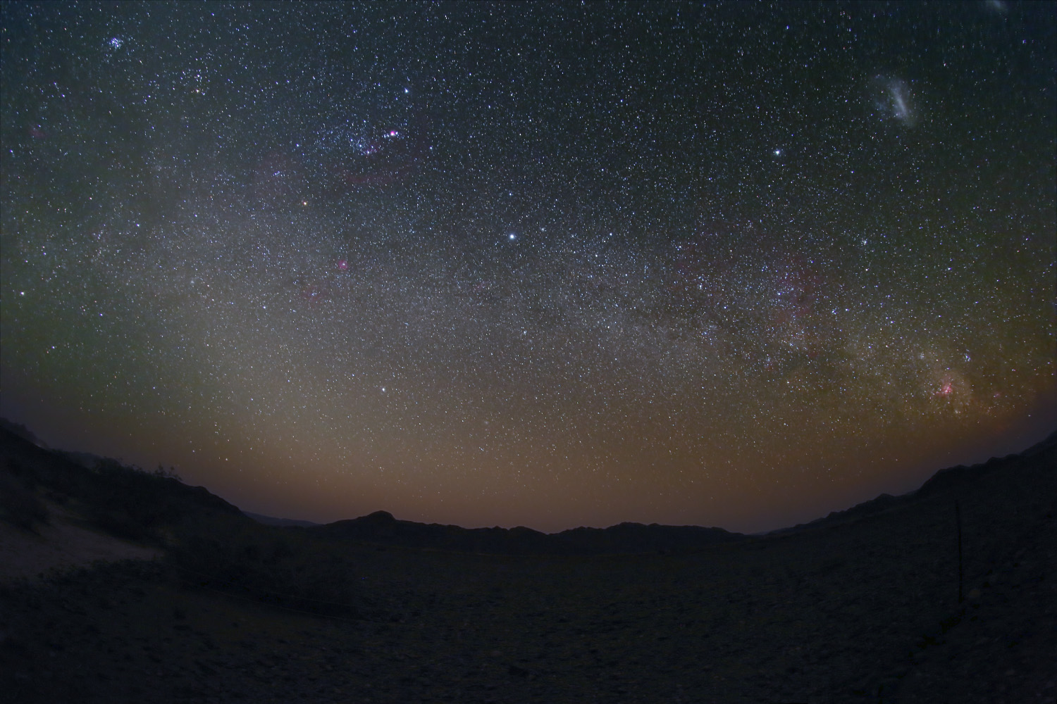 Unter namibischem Himmel sehen wir die Milchstraße von den Plejaden über Orion bis hin zu Eta Carinae.