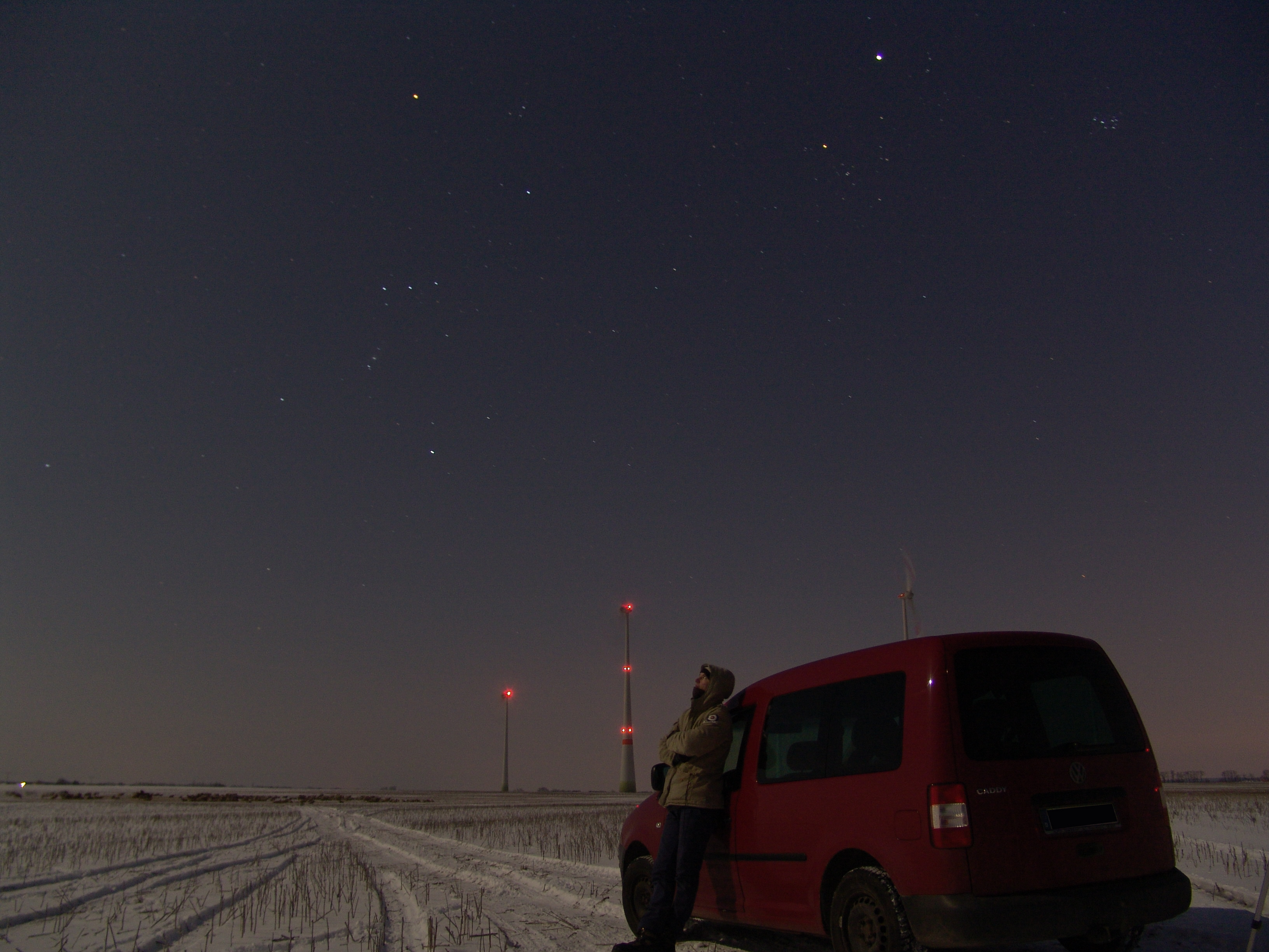 Für mich ist dies eines der schönsten Sternbilder am nördlichen Sternhimmel. Ich bin immer wieder von Orion faziniert. Das Licht des Mondes verleiht dieser Aufnahme einen ganz besonderen Charakter. Ich habe 30 Sekunden belichtet bei einer Brennweite von 2,2 Metern und ISO 64.