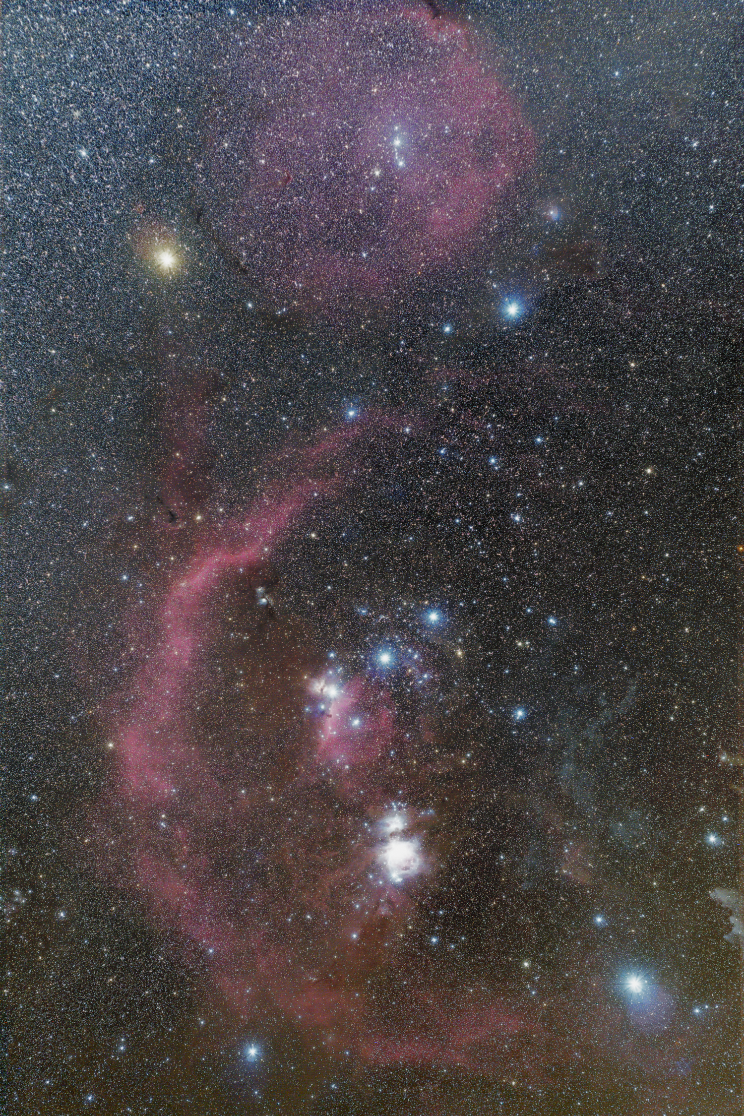 Ende Jänner 2011 konnte ich endlich eine schon sehr lange geplante Aufnahme durchführen - Orion mit 50 mm Brennweite. Ziel war es weniger die bekannten Objekte M 42 und Konsorten schön darzustellen, sondern zu zeigen, was sich sonst noch zwischen Rigel und Beteigeuze so versteckt.