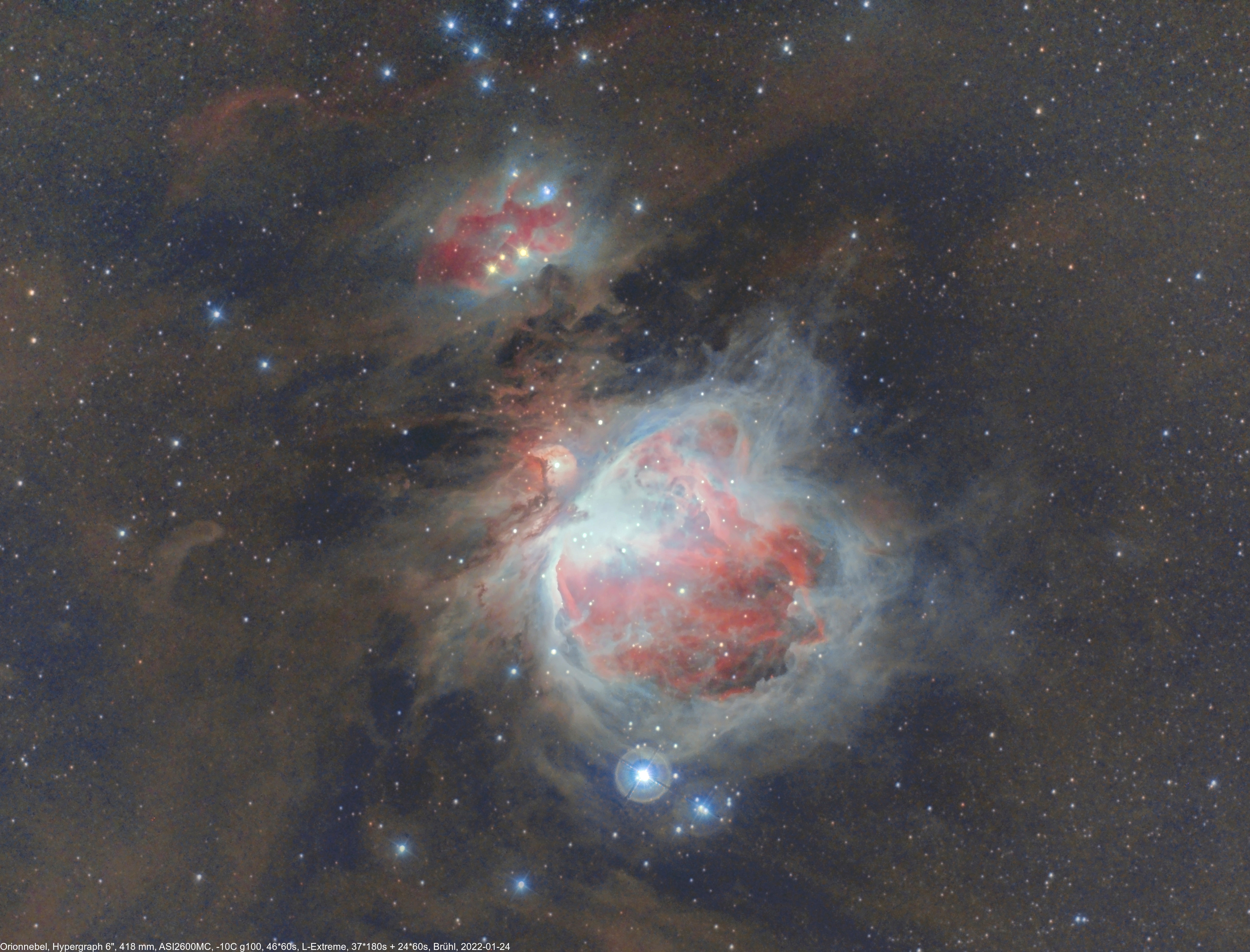 Einmal im Jahr ist es immer wieder eine Freude, die Nebel im Orion zu fotografieren. Meine Aufnahme zeigt die Nebel eingebettet in das interstellare Medium.