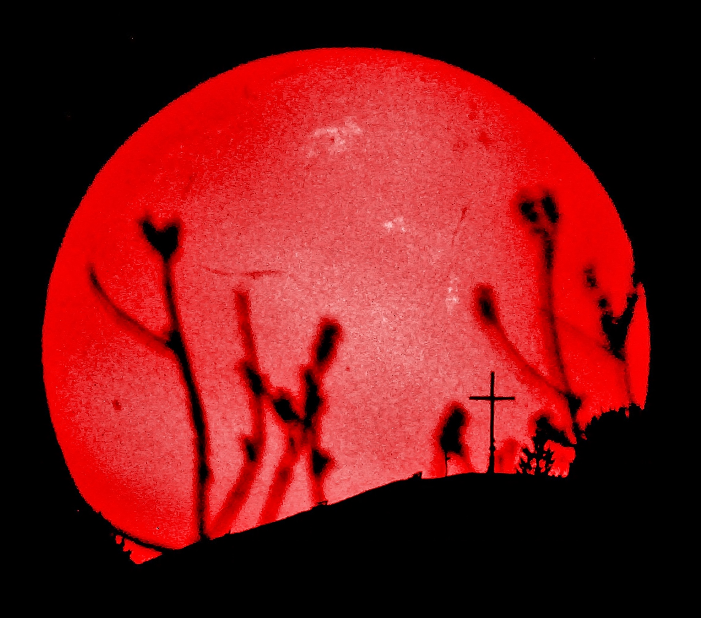 Jeden 12. April geht von meinem Balkon aus gesehen die Sonne hinter dem Gipfelkreuz des Zwiesels im Isarwinkel unter. Heuer wollte ich das fotogene Ereignis im Licht des Wasserstoffs fotografieren, das Wetter spielte wunderbar mit, nur Protuberanzen über dem Sonnenrand waren leider Mangelware. Auf der Oberfläche sind jedoch Aktivitätsgebiete und darüber Protuberanzen als Filamente zu erkennen. Frohe Ostern allen Sternfreunden!