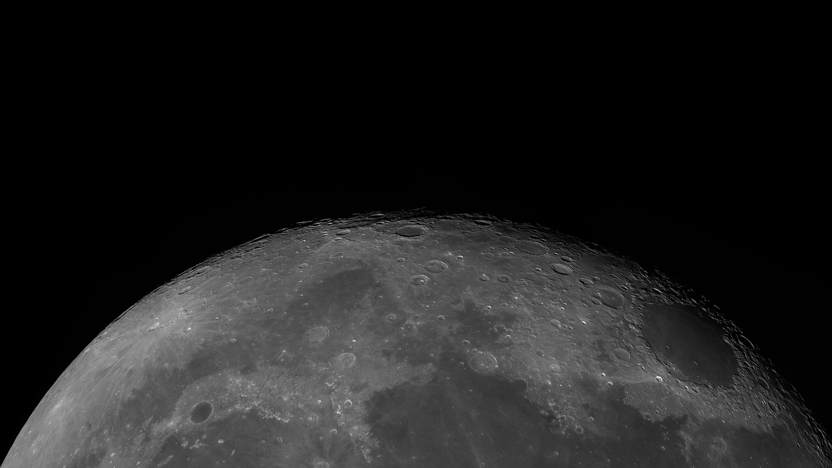 Bei eher schlechten Seeing-Bedingungen habe ich ein kurzes Mondpanorama des abnehmenden Mondes mit der ASI174MM am C9.25 bei f/10 aufgenommen. Das Panorama ist ein Mosaik aus sieben Einzelbildern, die mit jeweils 200 Frames von insgesamt 3500 erstellt wurden.