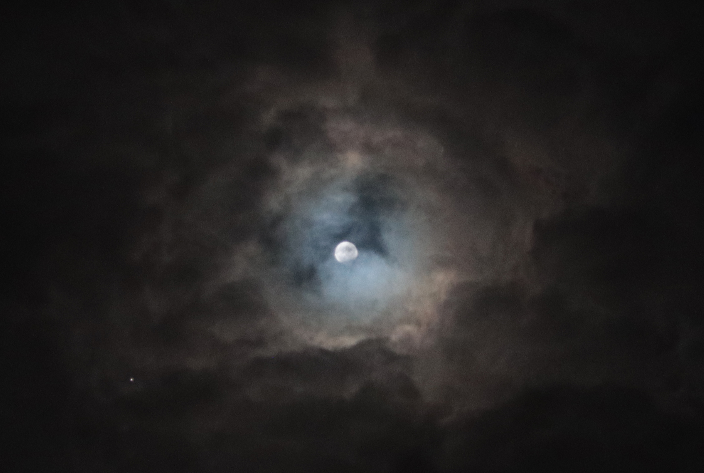 Mond und der Jupiter dringen mit ihrem Licht durch die Wolkendecke.