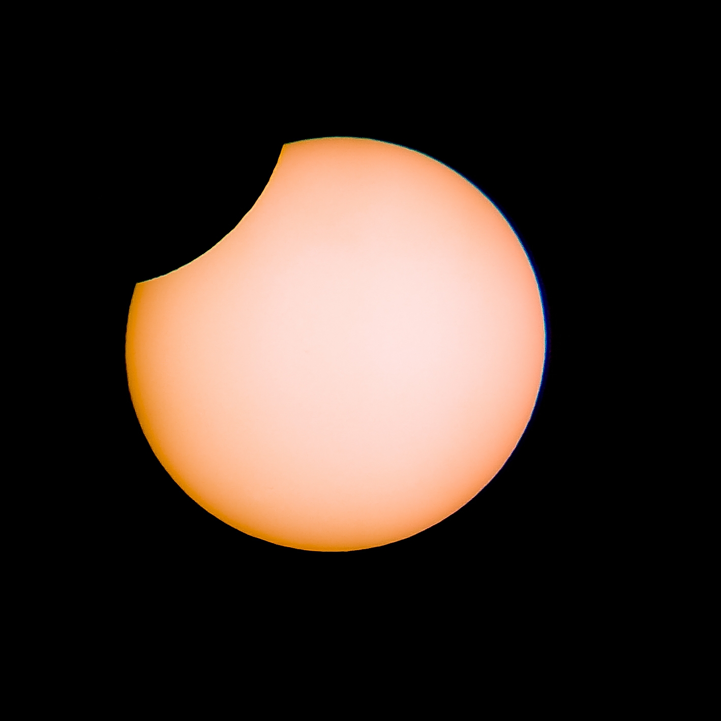 Das Foto kam beim Maximum (12:39 Uhr) der Partiellen Sonnenfinsternis am 10. Juni 2021, im Rahmen einer gemeinsamen Beobachtung mit A. Vogl zustande.