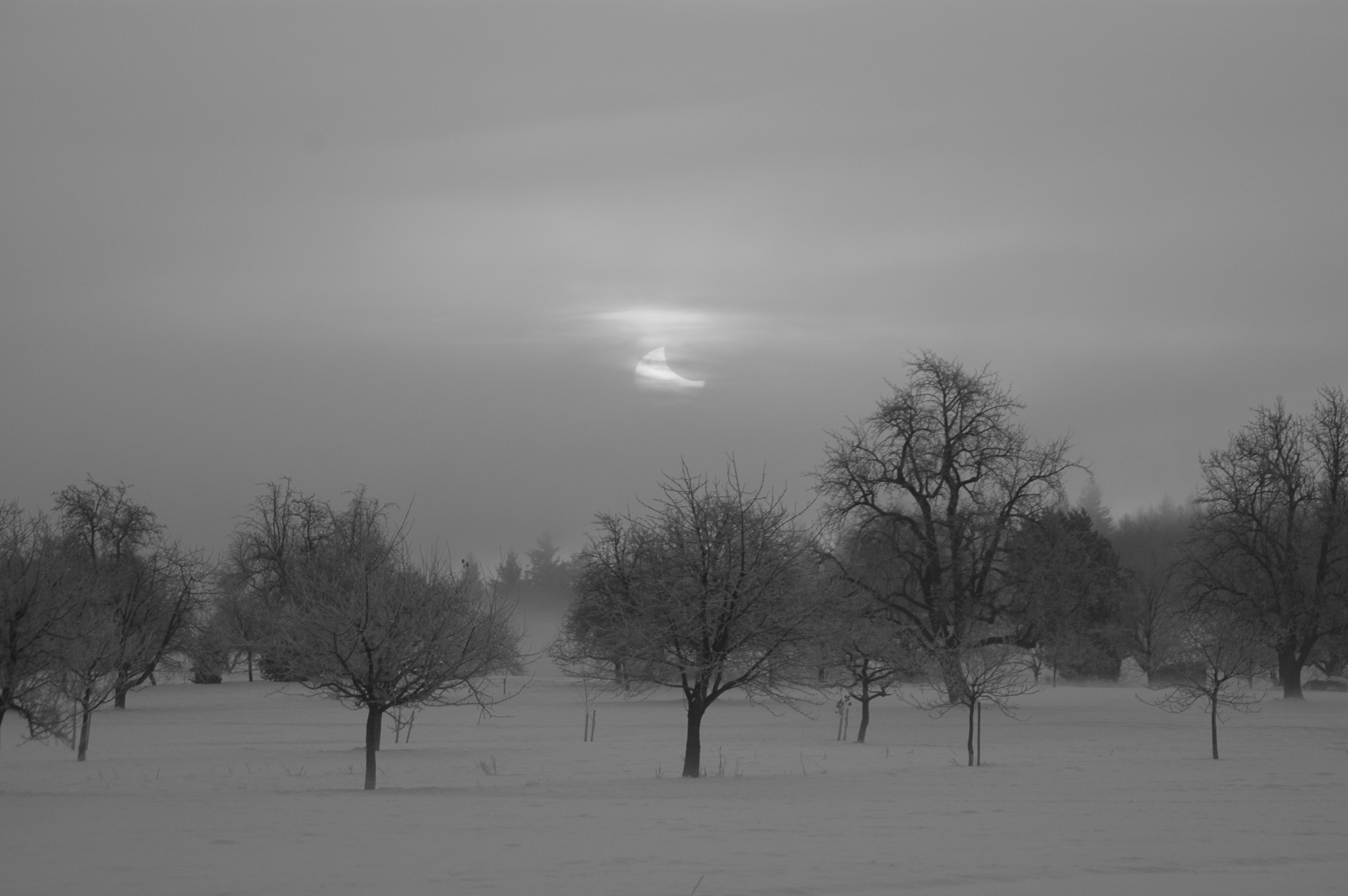 Leserbilder Astronomie: Partielle Sonnenfinsternis im Morgennebel - Nordschwarzwald