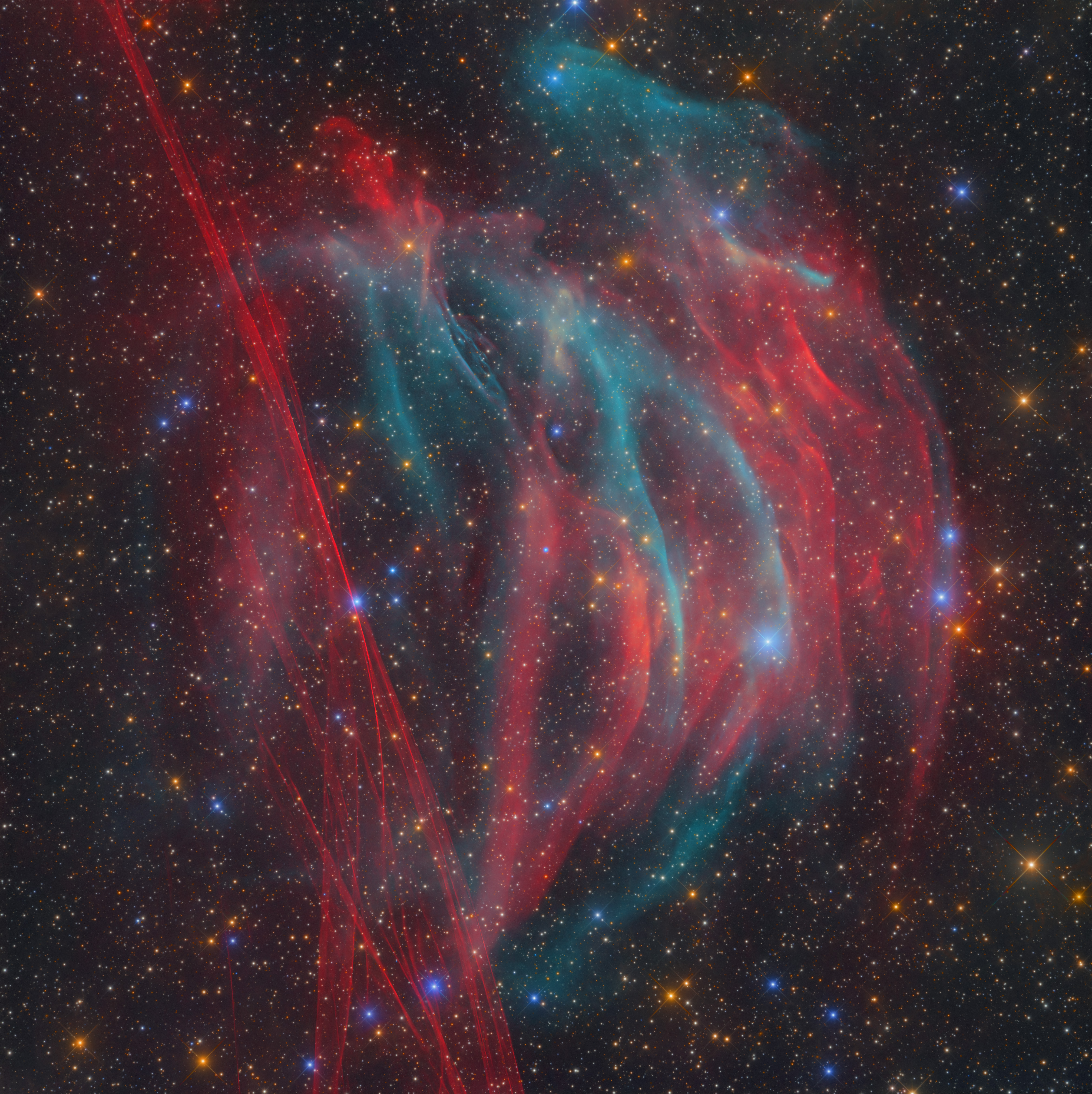 Bei der neusten Entdeckung unseres Teams bestehend aus Marcel Drechsler (Deutschland), Dana Patchick (USA), Xavier Strottner (Frankreich) handelt es sich um einen bislang unbekannten, potentiellen Planetarischen Nebel im Sternbild Schütze. Die Struktur hat einen Durchmesser von fast einen Grad am Nachthimmel und eine Entfernung von circa 840 Lichtjahren zur Erde. 6 Monate Arbeit, 68 Nächte und 133 Stunden Belichtungszeit waren nötig, um diesen extrem lichtschwachen Nebel abbilden zu können. Das Besondere an diesem Foto sind die extrem filigranen und blutroten Filamente des Supernova-Überrests G354-33, die im linken Bildbereich zu sehen sind. Es handelt sich dabei um das erste Foto, dass jemals von diesem nahezu unbekannten Supernova-Überrest realisiert wurde. Im Jahr 2004 wurde G354-33 als möglicher SNR in einem wissenschaftlichen Paper erwähnt. Wir waren mit unserer Arbeit jedoch in der Lage G354-33 als echten SNR zu bestätigen.