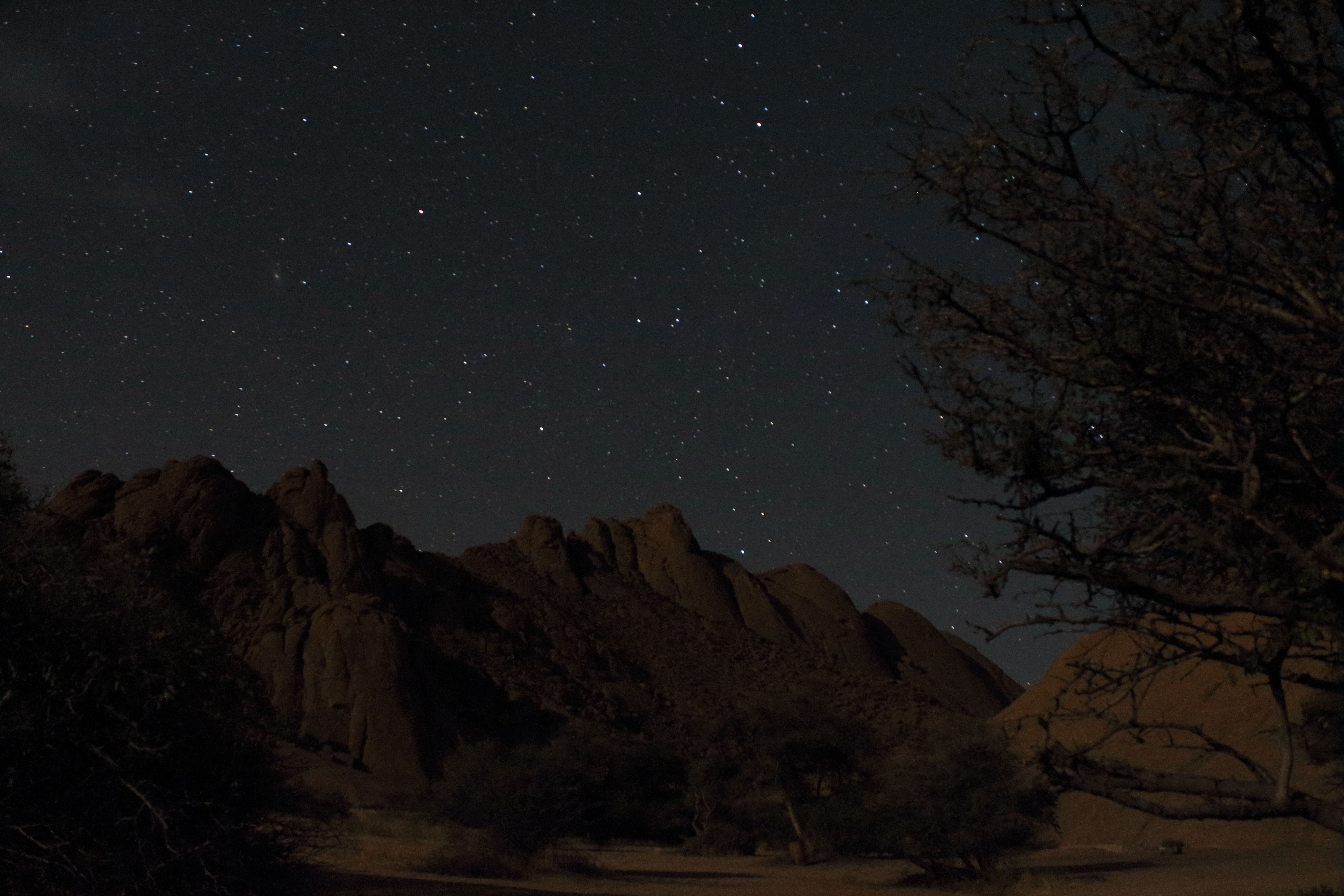Die Sternbilder Pegasus und Andromeda mit der Andomedagalaxie über der Spitzkoppe, Namibia. Canon Eos 650D, 55m Weitwinkel, 30 Sekunden, ISO 3200