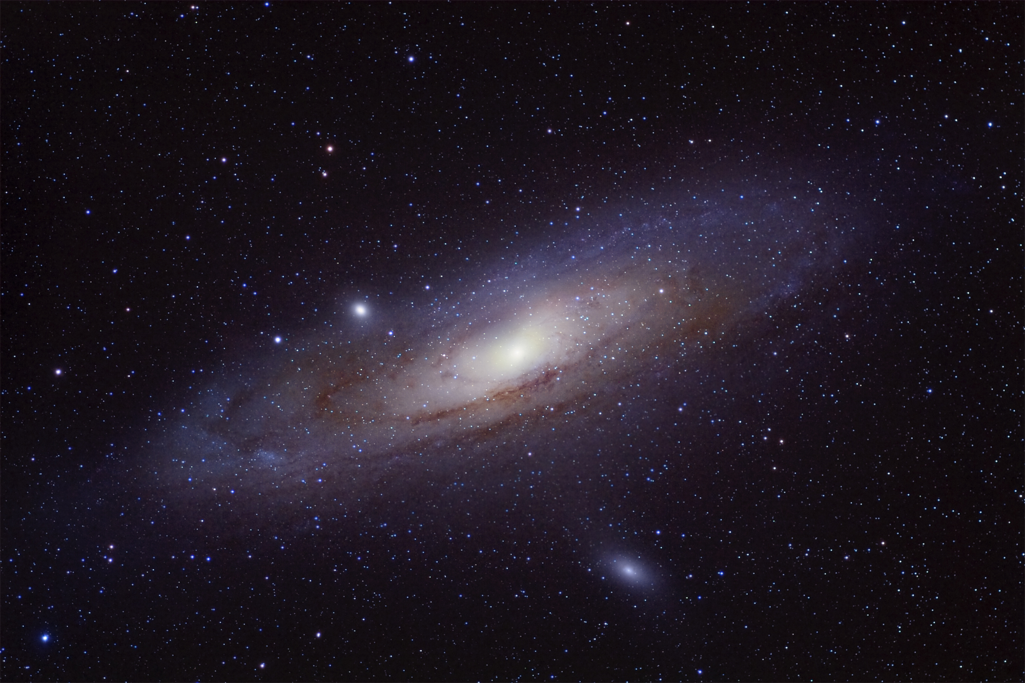 Die Aufnahme zeigt die Galaxie M31. Nachdem ich sehr lange mit meinem TMB bei 650 mm Brennweite gearbeitet habe, fehlten mir immer 500 mm für entsprechende Widefields im APS Format.