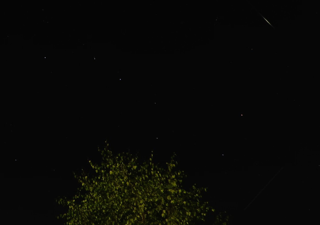 In der Nacht vom 11. zum 12. August 2021 war ein Perseid sowie eine Flugzeugspur neben dem Großen Wagen zu sehen.