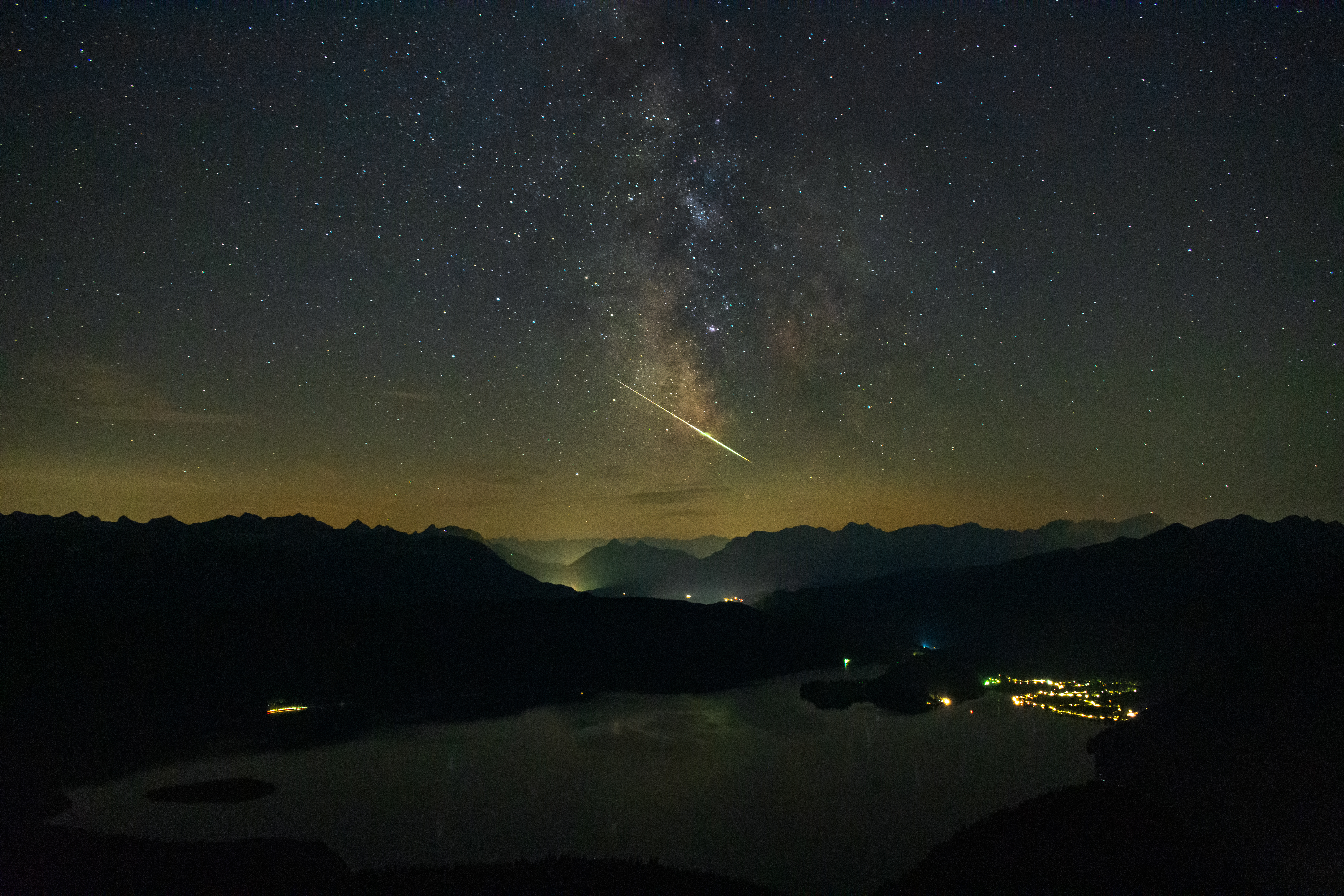 Here is a single shot of the Perseid Meteor Shower 2023 from Jochberg Peak (Bavarian Alps) in southern Germany. In this shot, you can see Walchensee Lake and also the Zugspitze (the highest peak in Germany) on the far horizon.