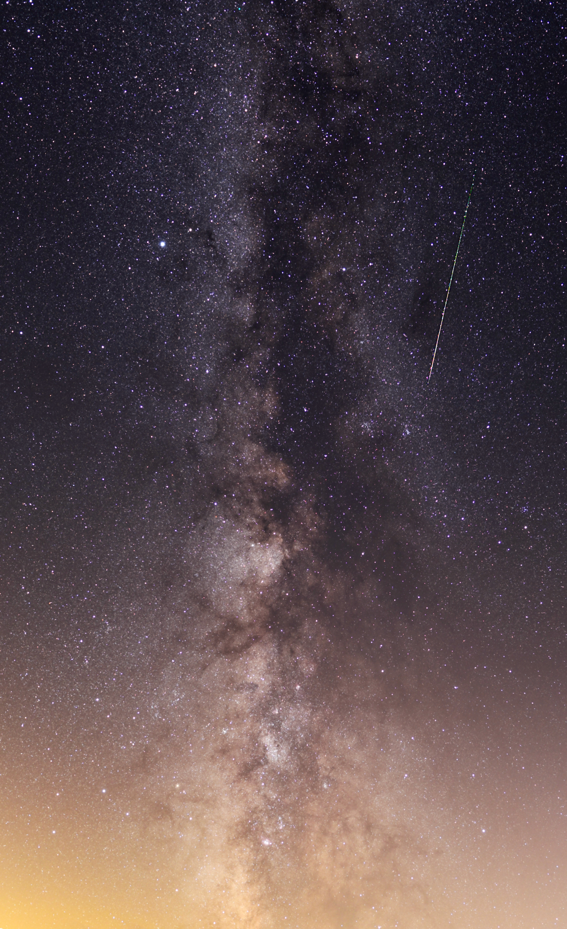 Wer kein Glück hat, braucht Ausdauer. So hat sich auf einem von 85 Einzelbildern der Milchstraße zu je 1 min dieser schöne, leicht grünlich leuchtende Perseid eingeschlichen.