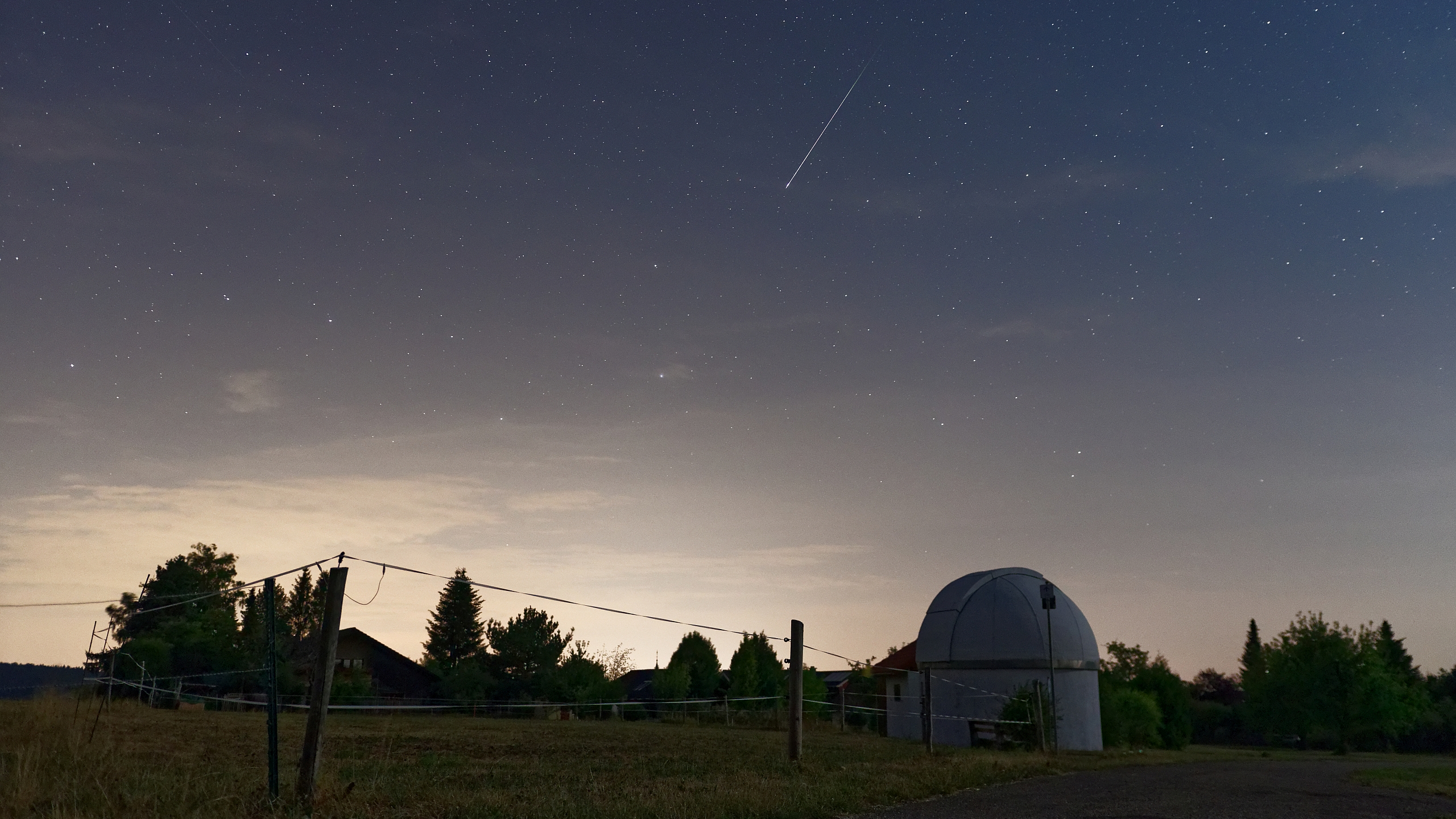 Die Aufnahme entstand während des Höhepunkt des Perseiden-Schauers. Zum Glück ist es mir gelungen, einen Perseiden mitsamt der Schömberger Sternwarte abzulichten!