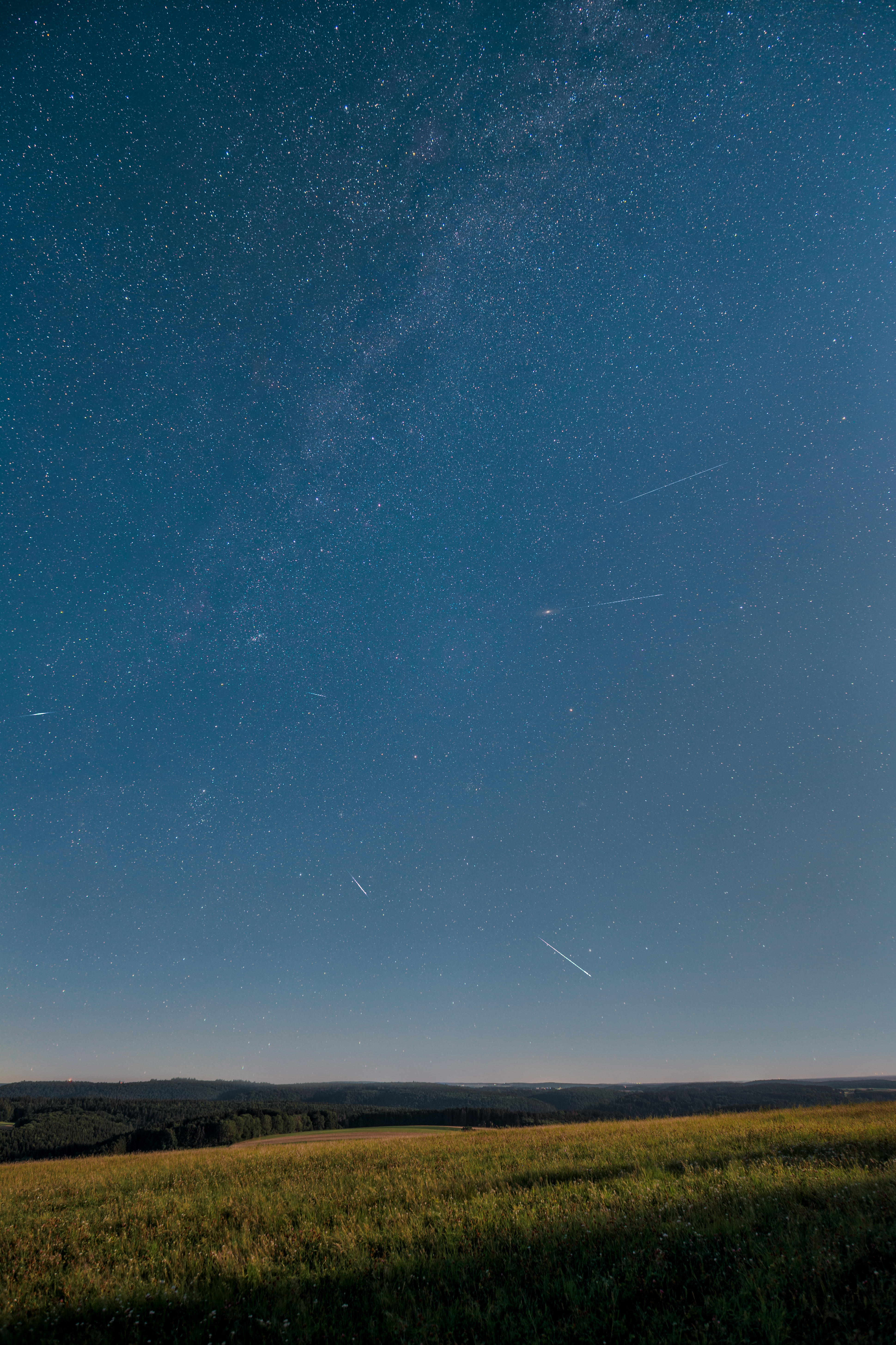 Die Perseiden 2022 vom Gipfel des Witthohs nahe Tuttlingen aus fotografiert bei Vollmondlicht.