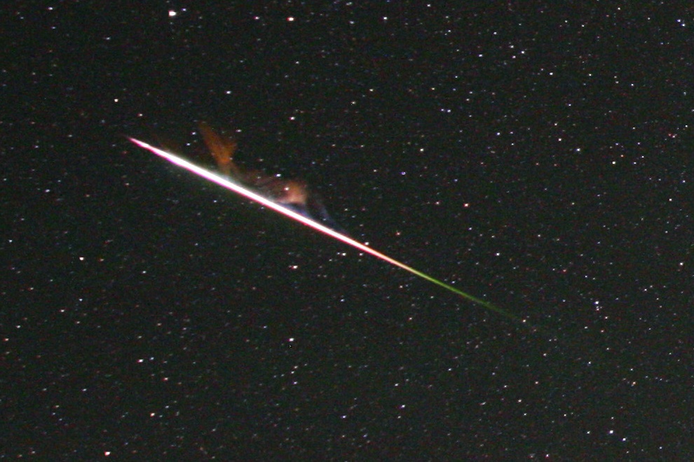 Perseiden-Feuerkugel mit intensiver Rauchspur.