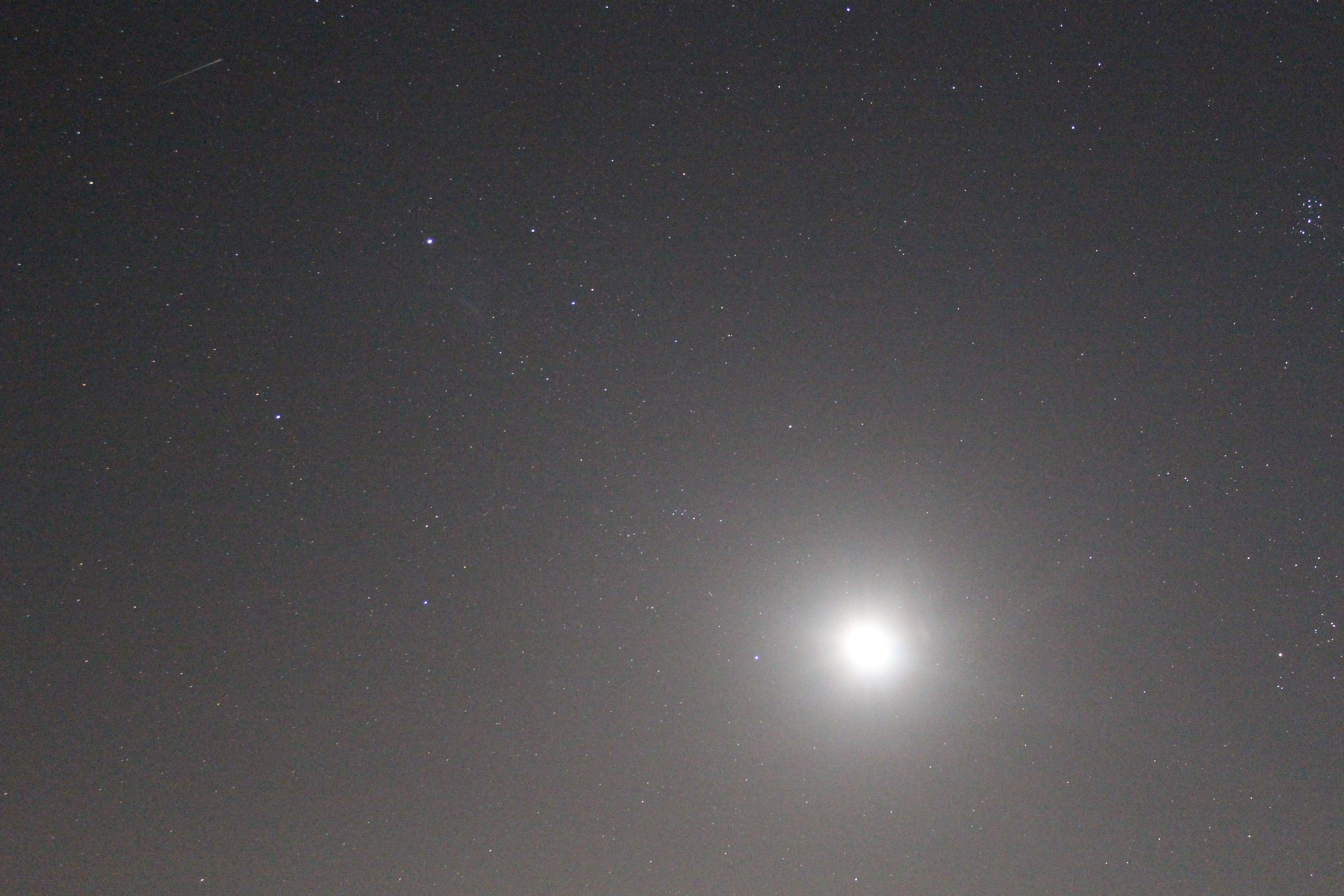Perseiden-Meteor im Sternbild Fuhrmann, aufgenommen im Zuge der Erstellung einer zeitgesteuerten Fotosequenz des nordöstlichen Sternenhimmels.
