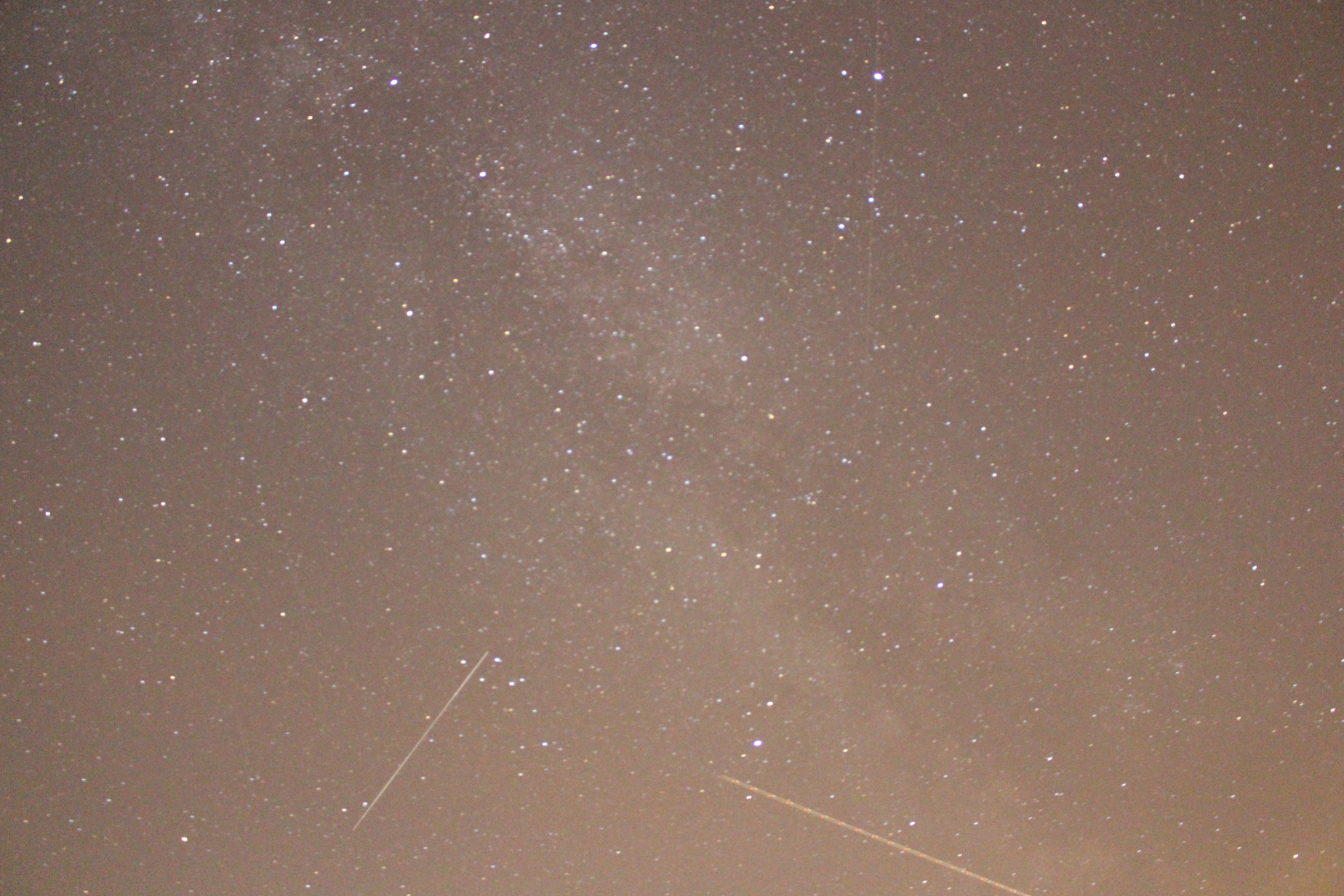 Gleich drei Sternschnuppen konnte ich innerhalb von 30 Sekunden Belichtungszeit in diesem Bild festhalten. Trotz der erhöhten Lichtverschmutzung ist die Milchstraße gerade noch zu sehen.