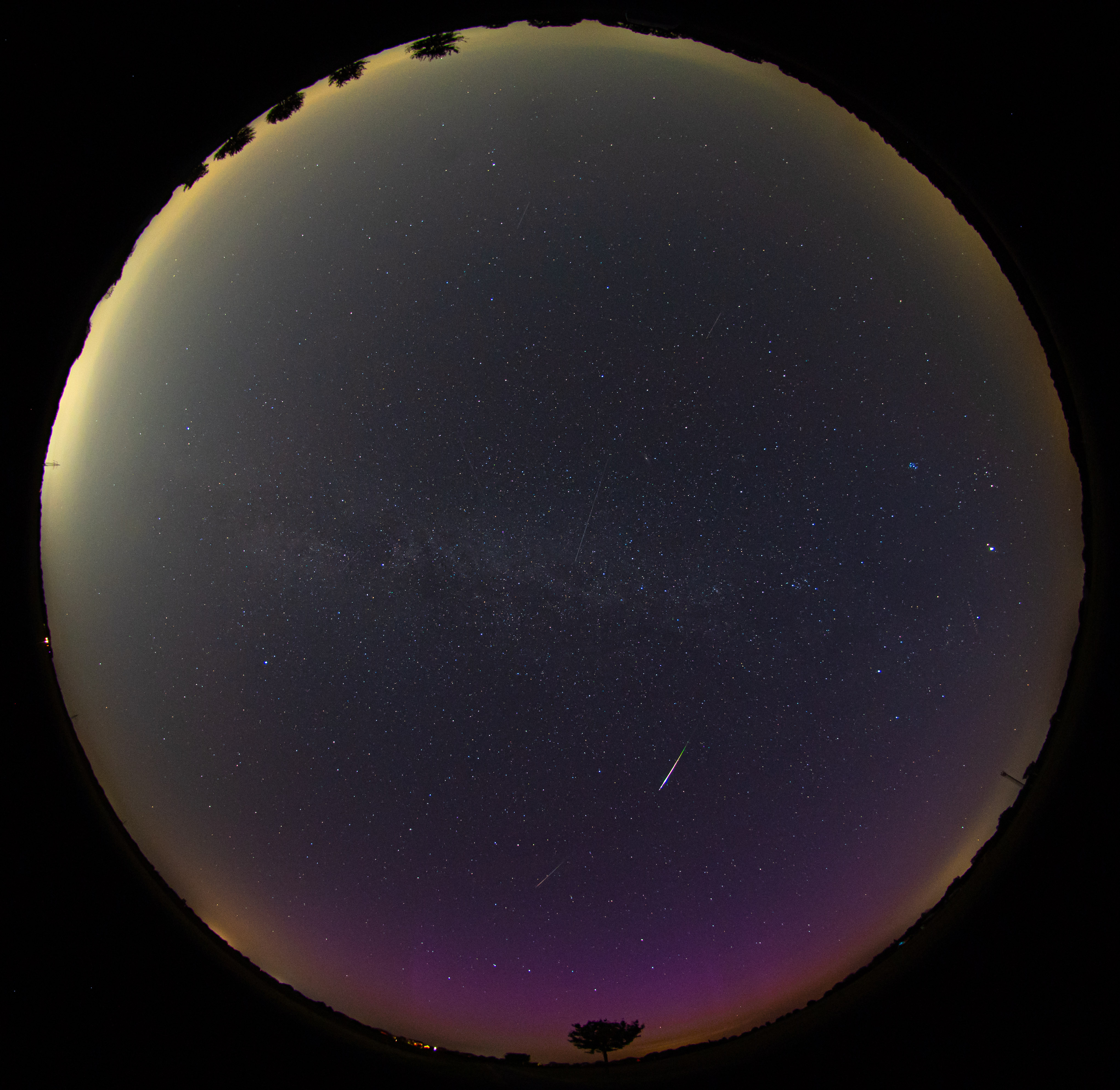 Diese Kombination erlebt man selten. Selbst in der Region Hannover zeigten sich am späten Abend des 12. August intensive Polarlichter. Zwei Kameras (Nikon Z6II mit Fisheye und Sony A7s III mit 1,8/14mm) arbeiteten im Wechsel von 22 Uhr bis 4 Uhr am nächsten Morgen. Die Temperaturen waren angenehm - eine insgesamt gemütliche Nacht bei (fast) wolkenlosem Himmel (ohne Mond!).