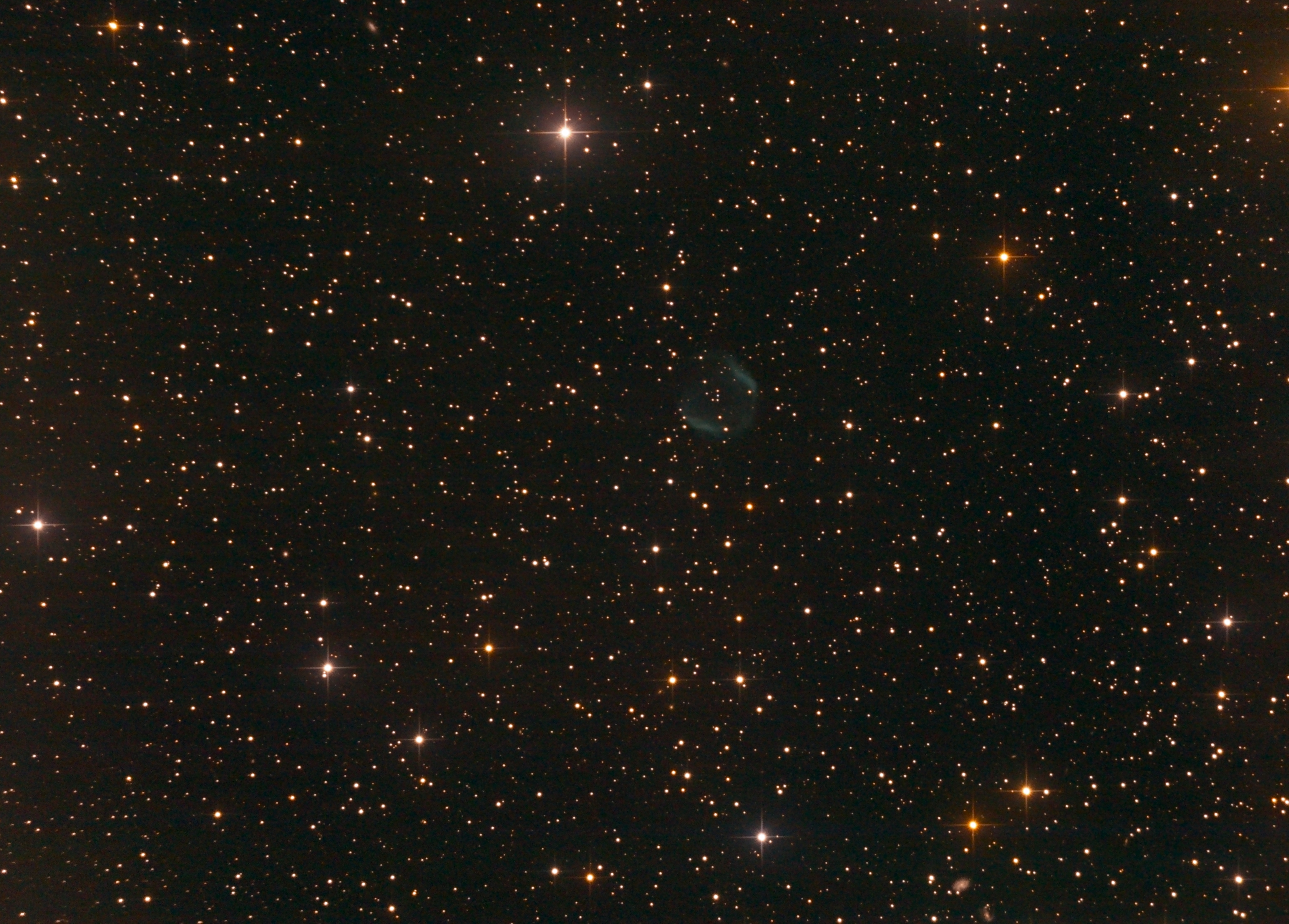 Inspiriert durch einen Artikel in SuW hatte ich mir diesen schwachen, planetarischen Nebel ausgesucht, auch um die Grenzen meiner Ausrüstung zu testen. Alle Photonen wurden in vier Nächten im November 2020 gesammelt, teils mit etwas Mondschein.