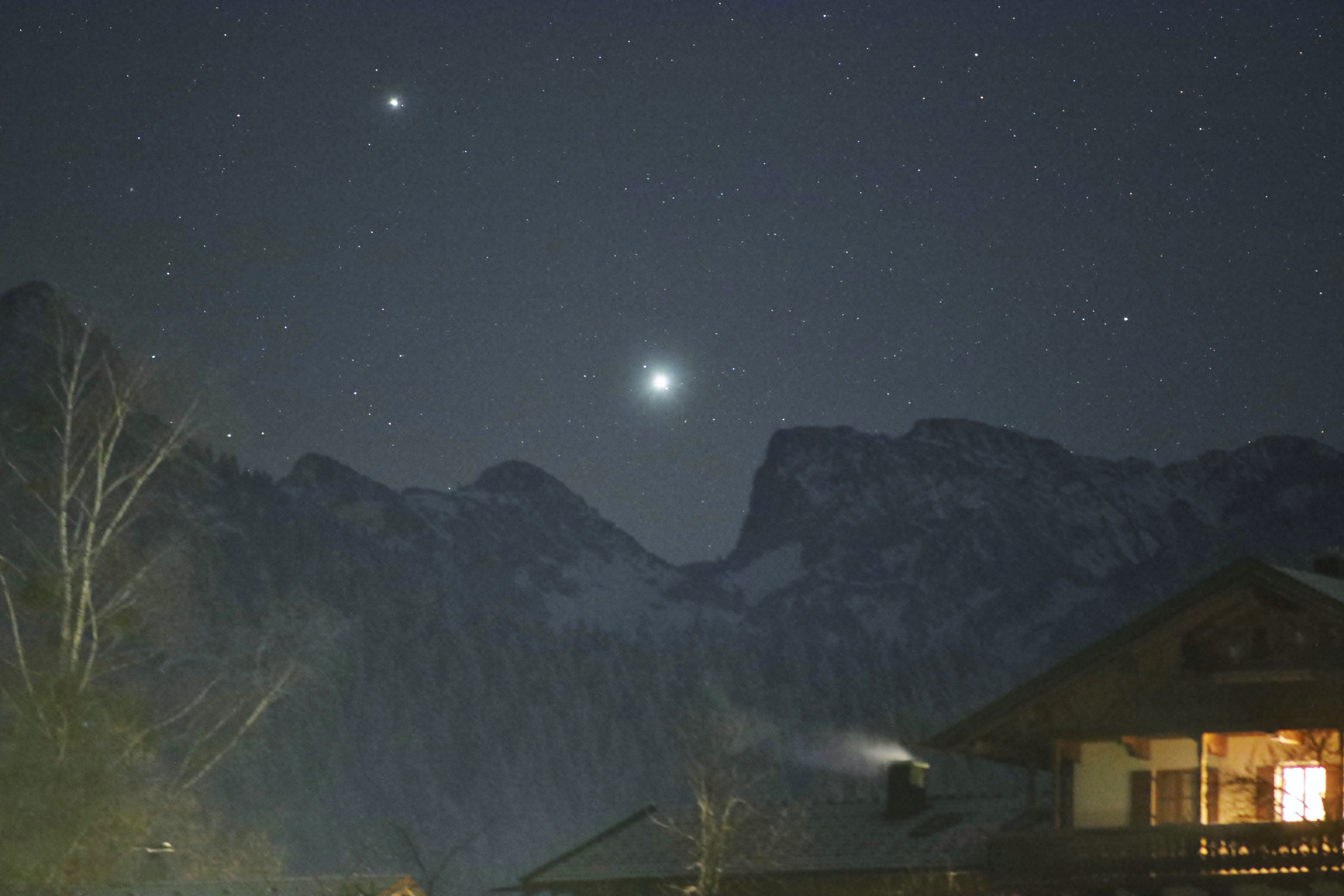 Es ist wie eine Planetariumsvorführung, aber im Maßstab 1:1, in Echtzeit und vollkommen kostenlos, was allabendlich über dem Südwesthorizont zu beobachten ist. Wichtig ist, jeden klaren Abend für einen Blick zu nutzen, denn wer weiß schon, wann in dieser Jahreszeit der nächste ungetrübte Blick möglich ist.