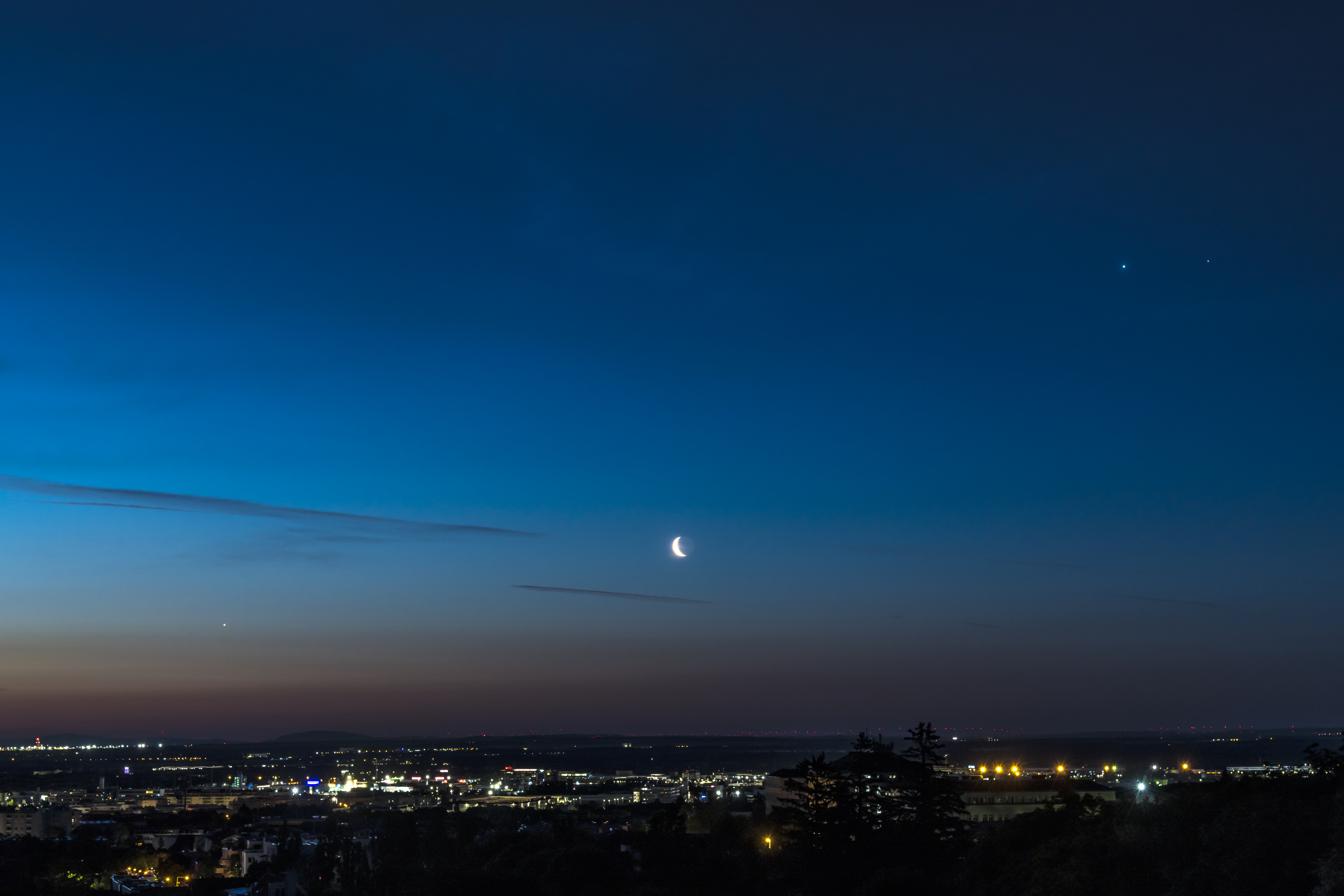 Derzeit gibt es einen Planetenreigen am Morgenhimmel. Zusätzlich ist auch der abnehmende Mond dabei, der die Stimmung der Aufnahme noch verbessert. Dieses schöne Himmelsschauspiel wollte ich fotografisch festhalten.