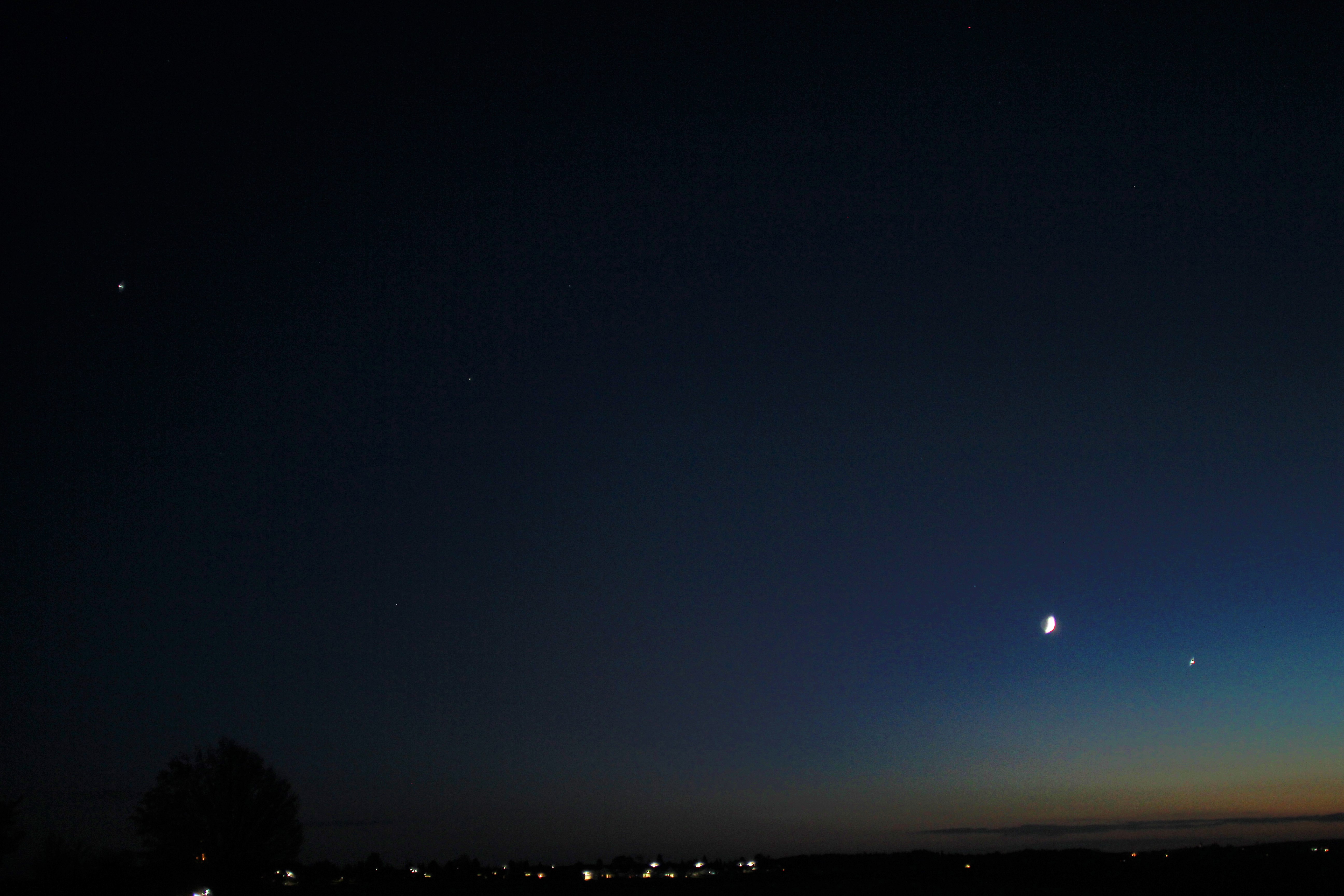 Leserbilder Astronomie: Planetenparade (Jupiter, Saturn, Venus) und dazwischen die Mondsichel