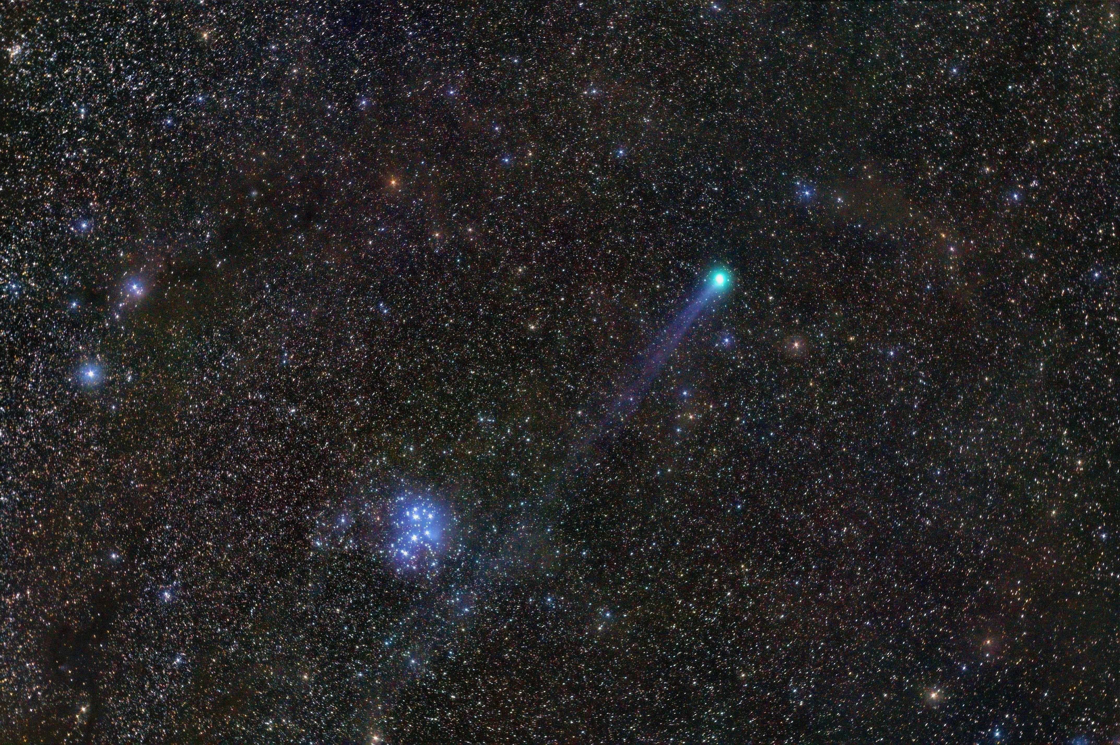 Leserbilder Astronomie: Plejaden mit Komet Lovejoy