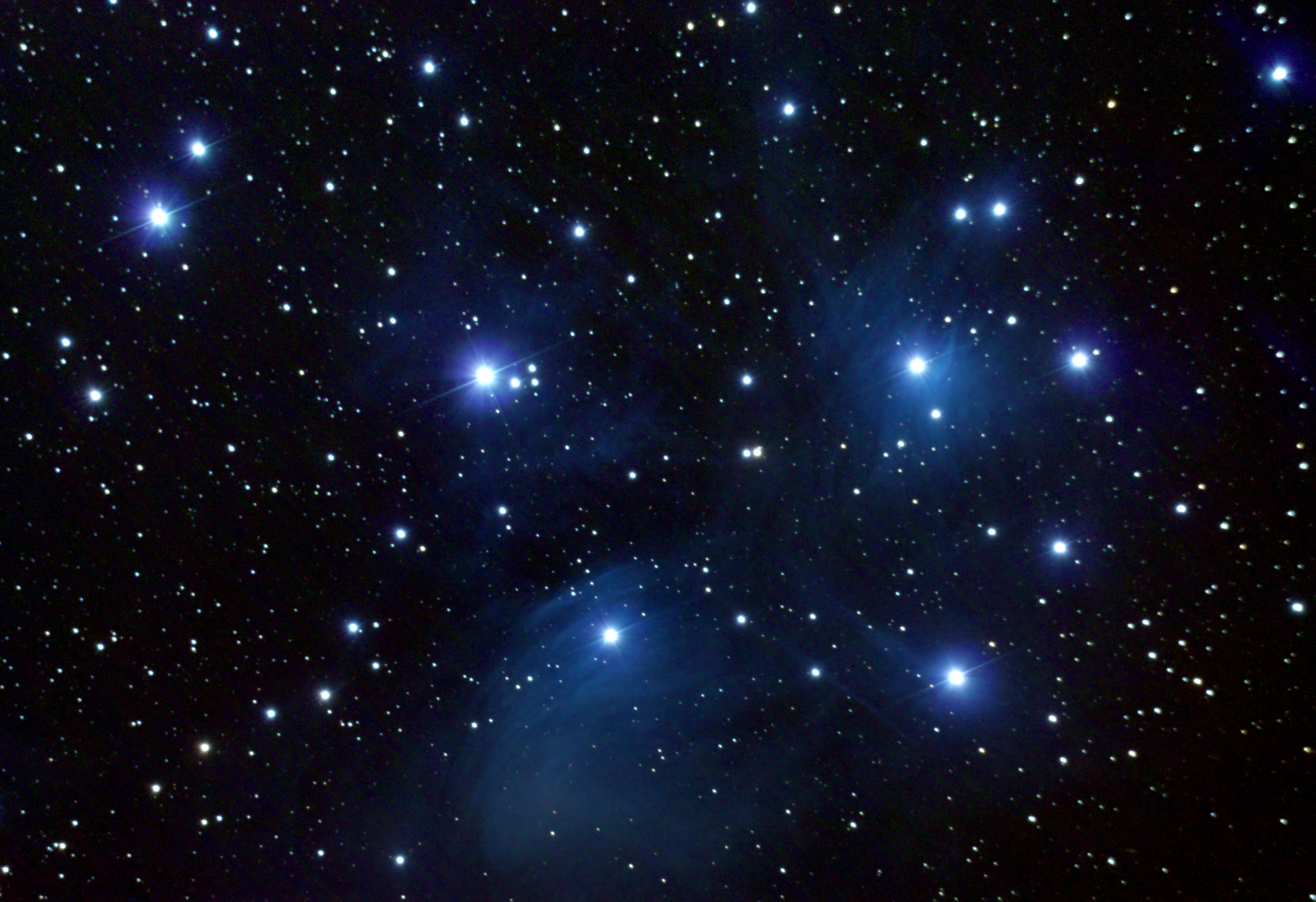 Die Plejaden aufgenommen am 02.02.2013 aus Coburg Stadt. 35min Gesamtbelichtungszeit mit Canon EOS 550Da am 8" f/4 Schmidt-Newton Teleskop.