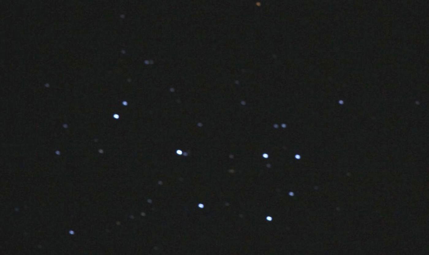 Dienstagabend circa 21 Uhr. Klare Sicht. Kamera aufs Stativ und die Plejaden aufgenommen.