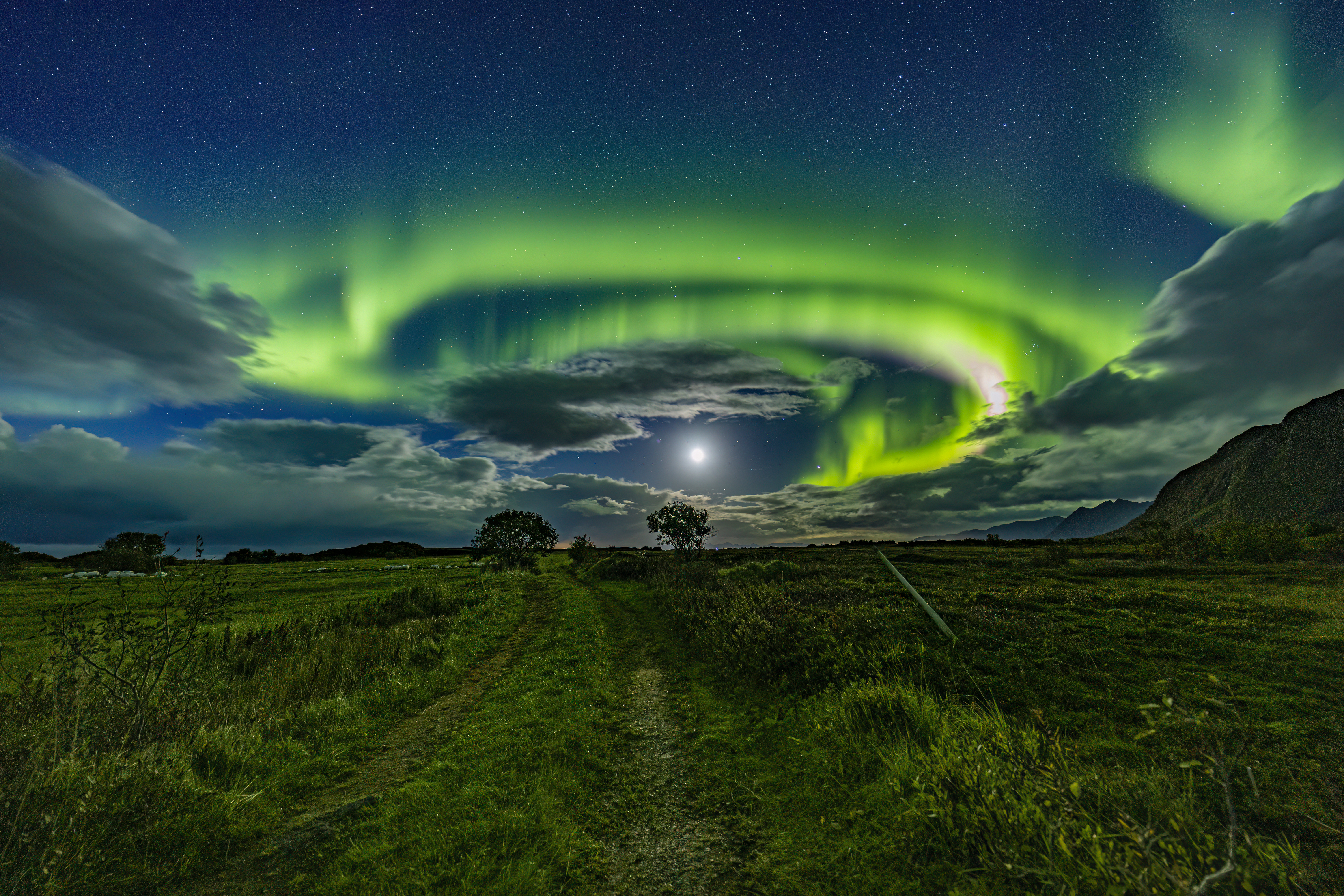 Aufnahme im Urlaub auf den Lofoten. Der Mond erhellte die ganze Szenerie, die auch mit dem Auge sichtbar war.