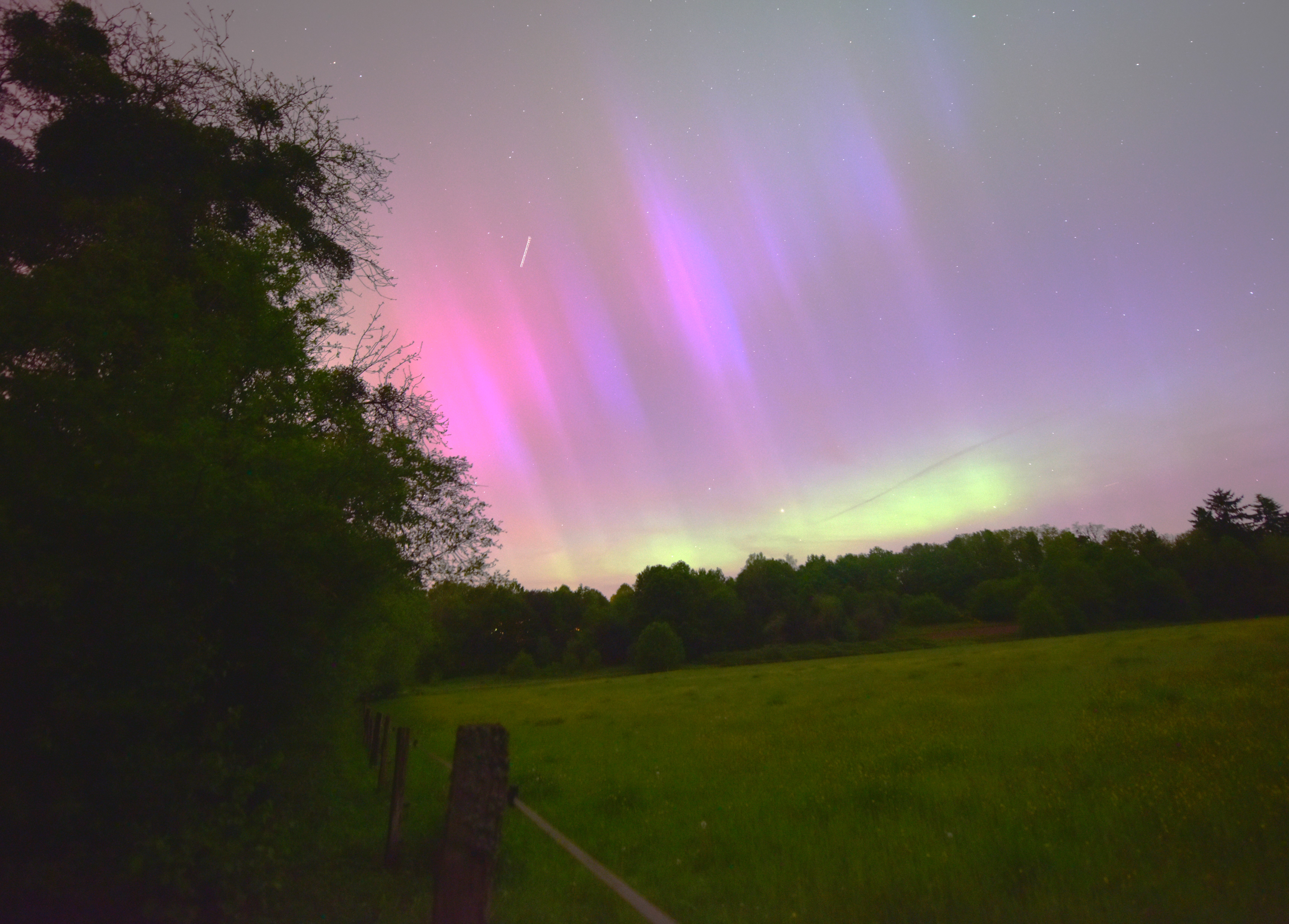 Ich glaube zufälligerweise das Polarlicht samt ISS eingefangen zu haben. Danke für etwaige Erläuterungen. Bild entstanden in Siersburg im Saarland.