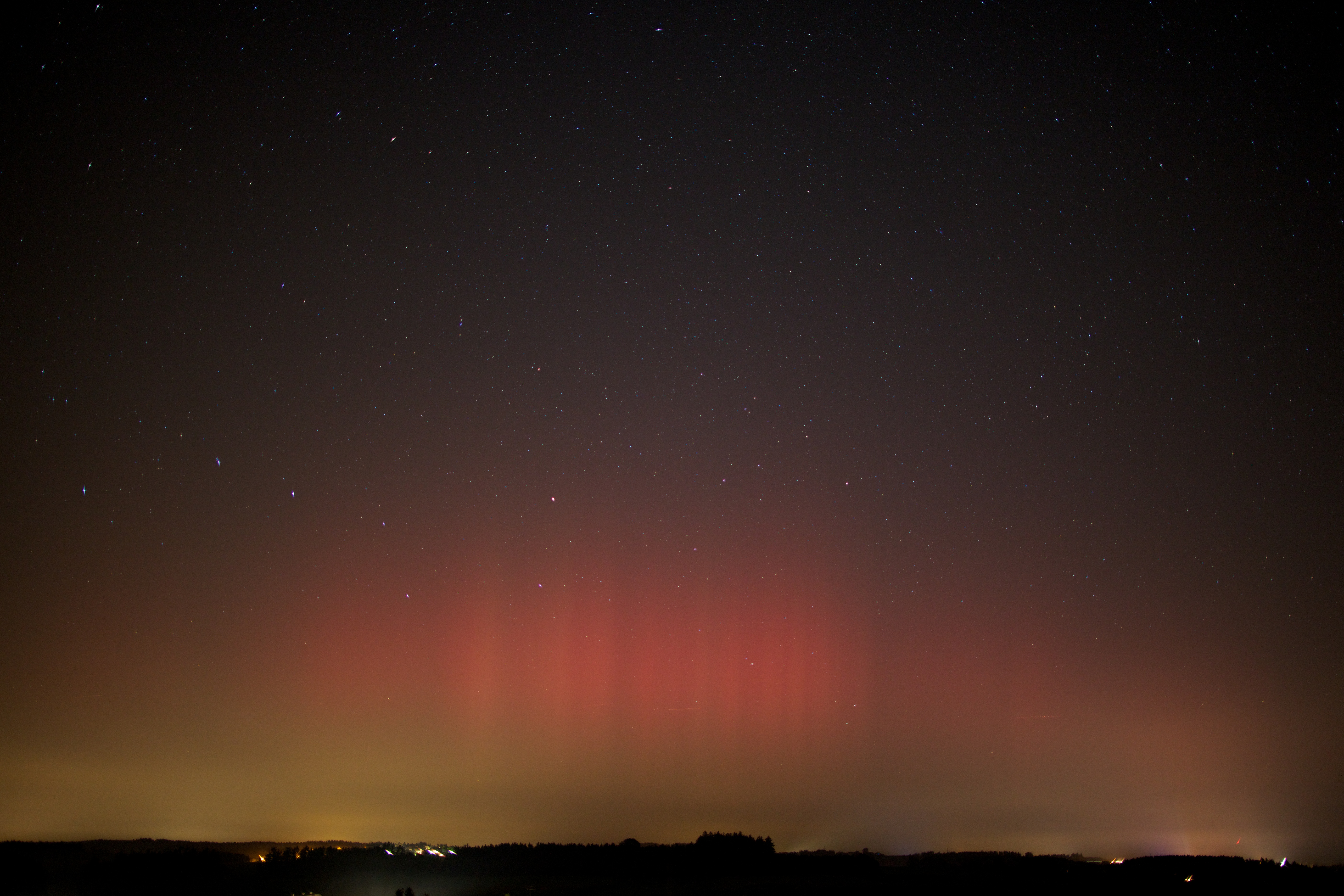 Aufgrund des Anrufes eines guten Sternfreundes raffte ich mich auf, um das Polarlicht in Bayern zu begrüßen.