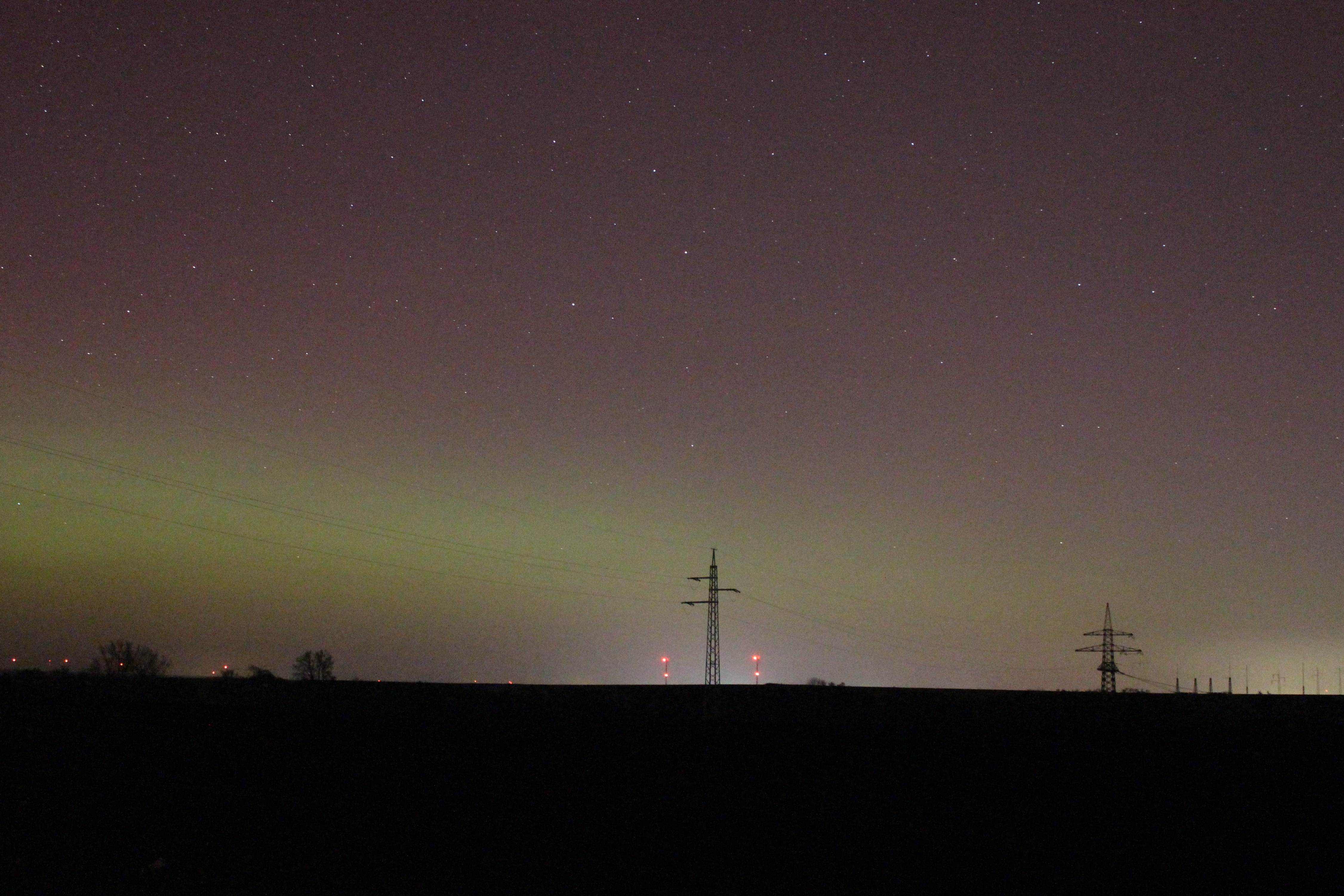 In der Nacht vom 19. zum 20. Januar 2026 gab es wieder einmal ein Polarlicht, welches ich südlich von Schweinfurt mit Masten der 110 kV-Leitung Dürrbachau-Schweinfurt fotografierte.