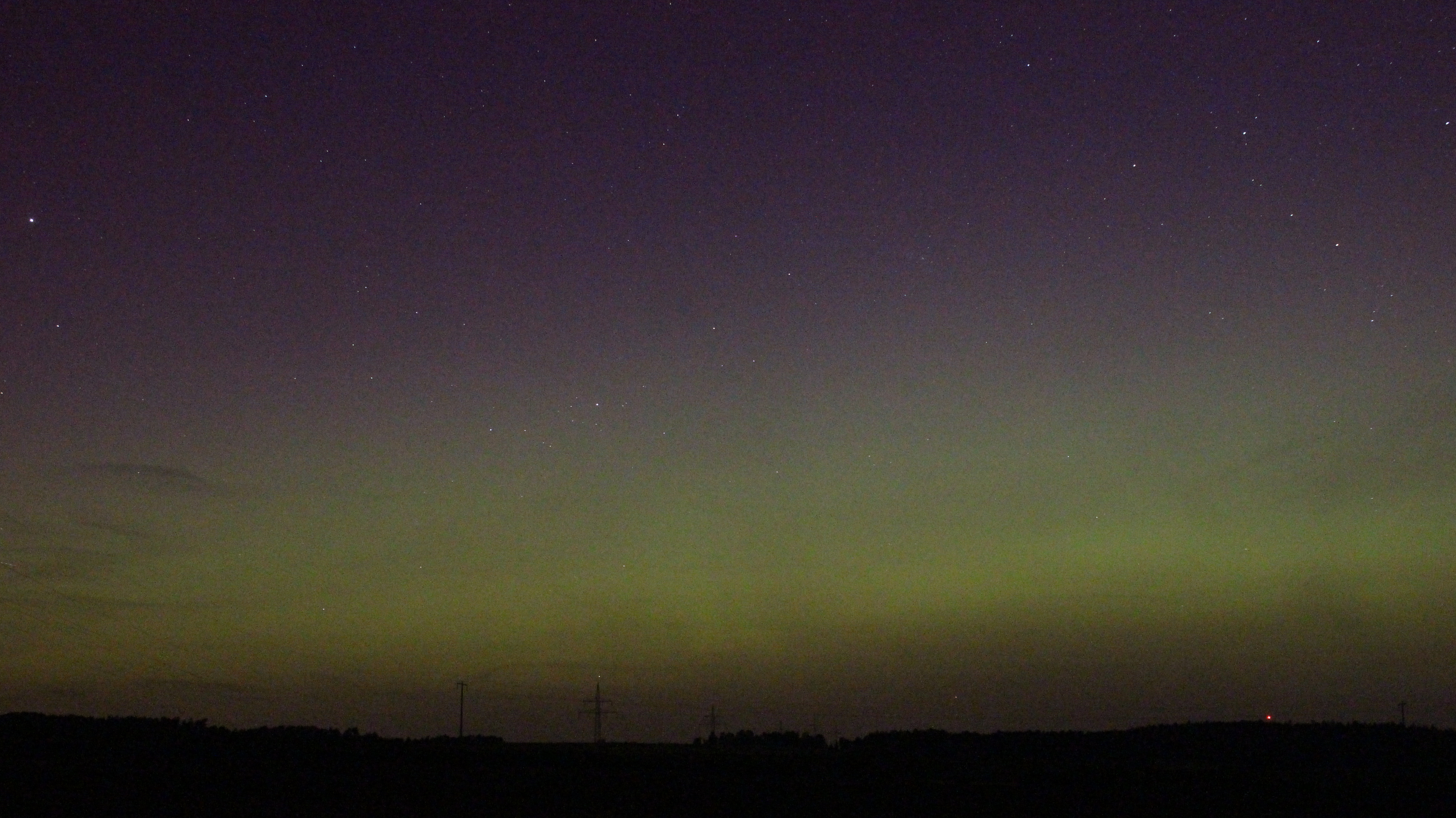 Polarlicht über dem Nordhorizont, aufgenommen zwischen Wollbach und Lebenhan.
