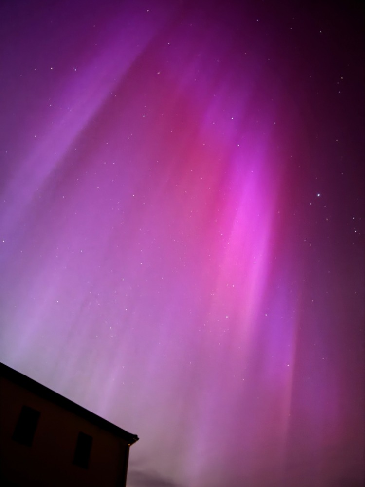 Da ich im Vorfeld schon von den Polarlichtern erfahren hatte, bin ich gegen 23:30 Uhr aus dem Haus und habe bis 01:00 Uhr Fotos von diesen bezaubernden Lichtern gemacht. Ein unvergessliches Erlebnis.