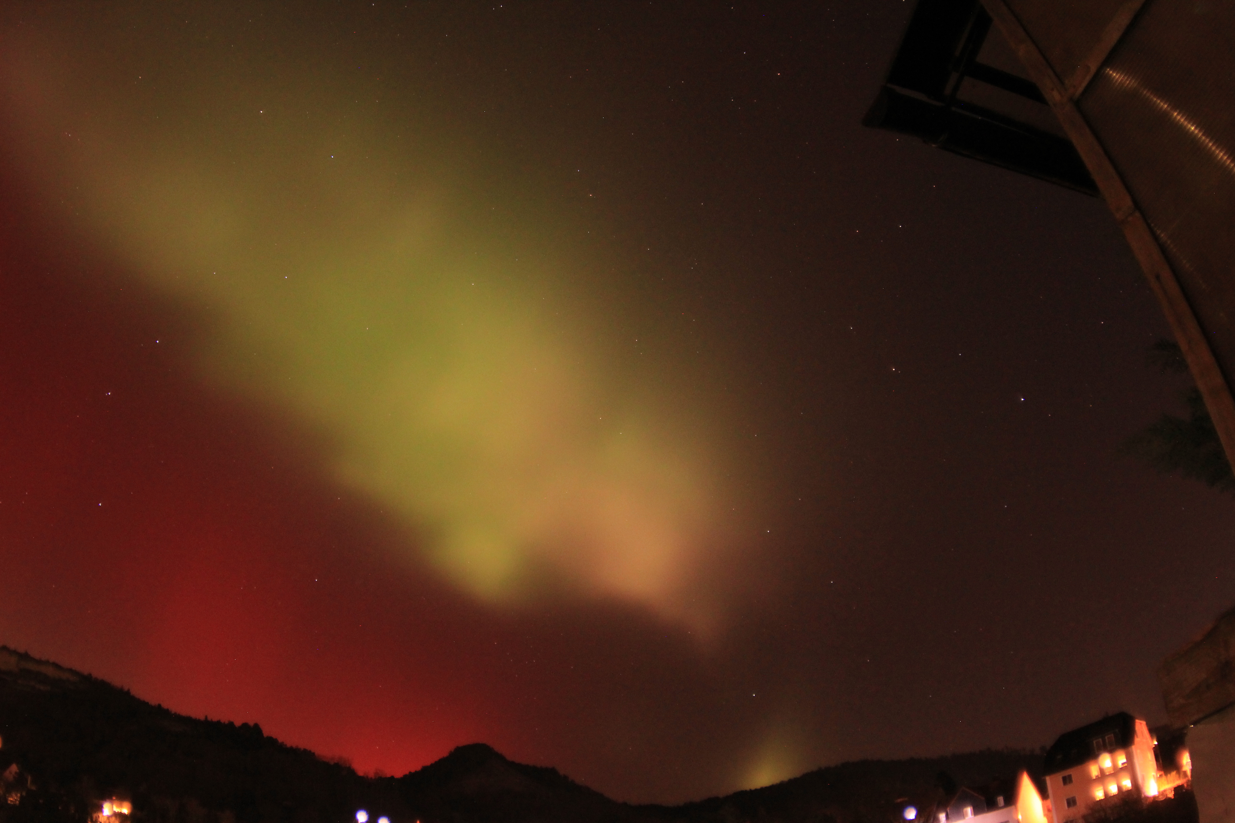 Glücklicherweise kam eine E-Mail mit dem Hinweis auf gut sichtbare Polarlichter. Hier ist ein Schnappschuss dieses beindruckenden Ereignisses. Die anderen Fotos müssen noch gesichtet werden.