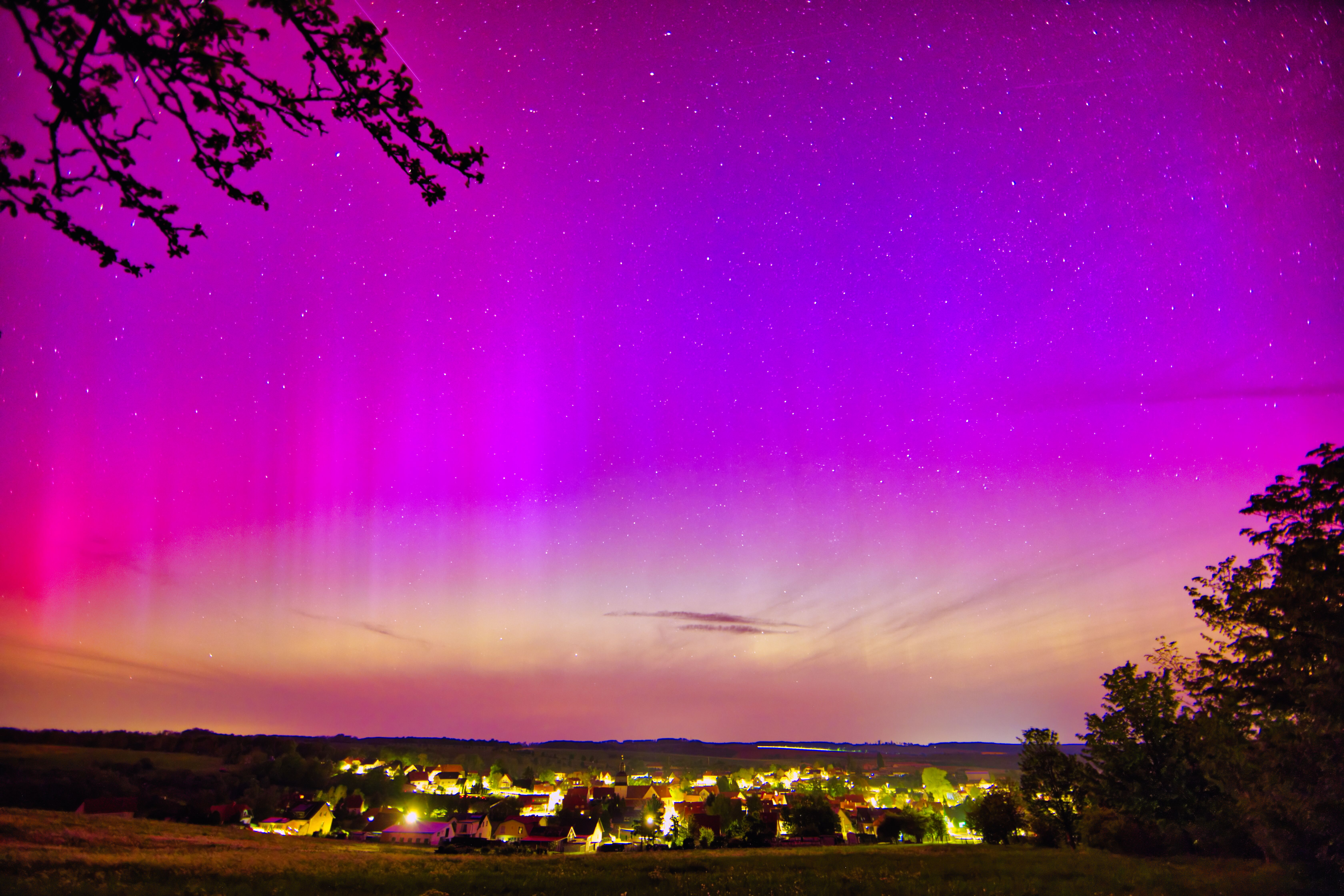 Polarlichter über Kefferhausen (Eichsfeld / Thüringen) in der Nacht zum 11. Mai 2024.