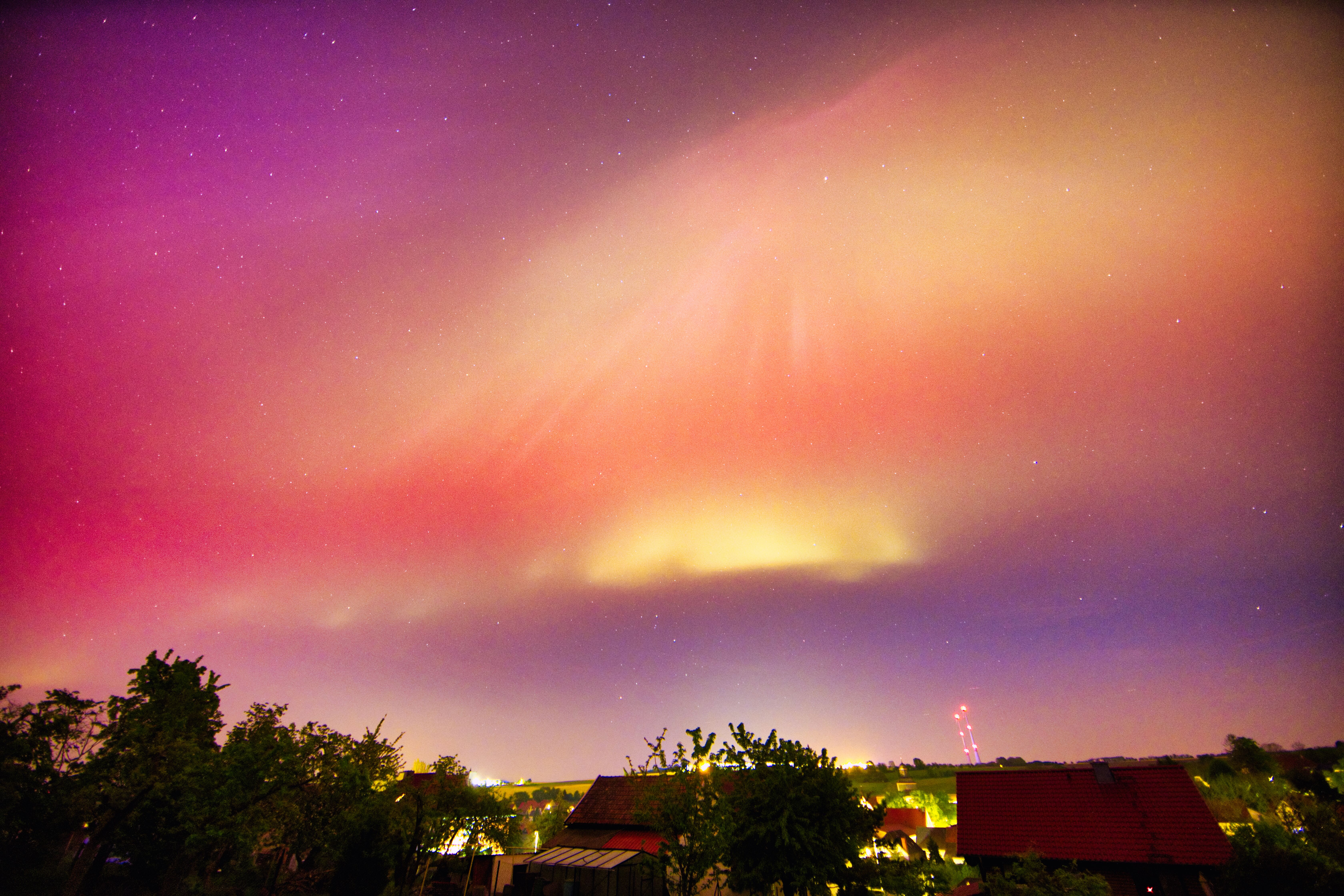 Polarlichter über Kefferhausen (Eichsfeld / Thüringen) in der Nacht zum 11. Mai 2024.