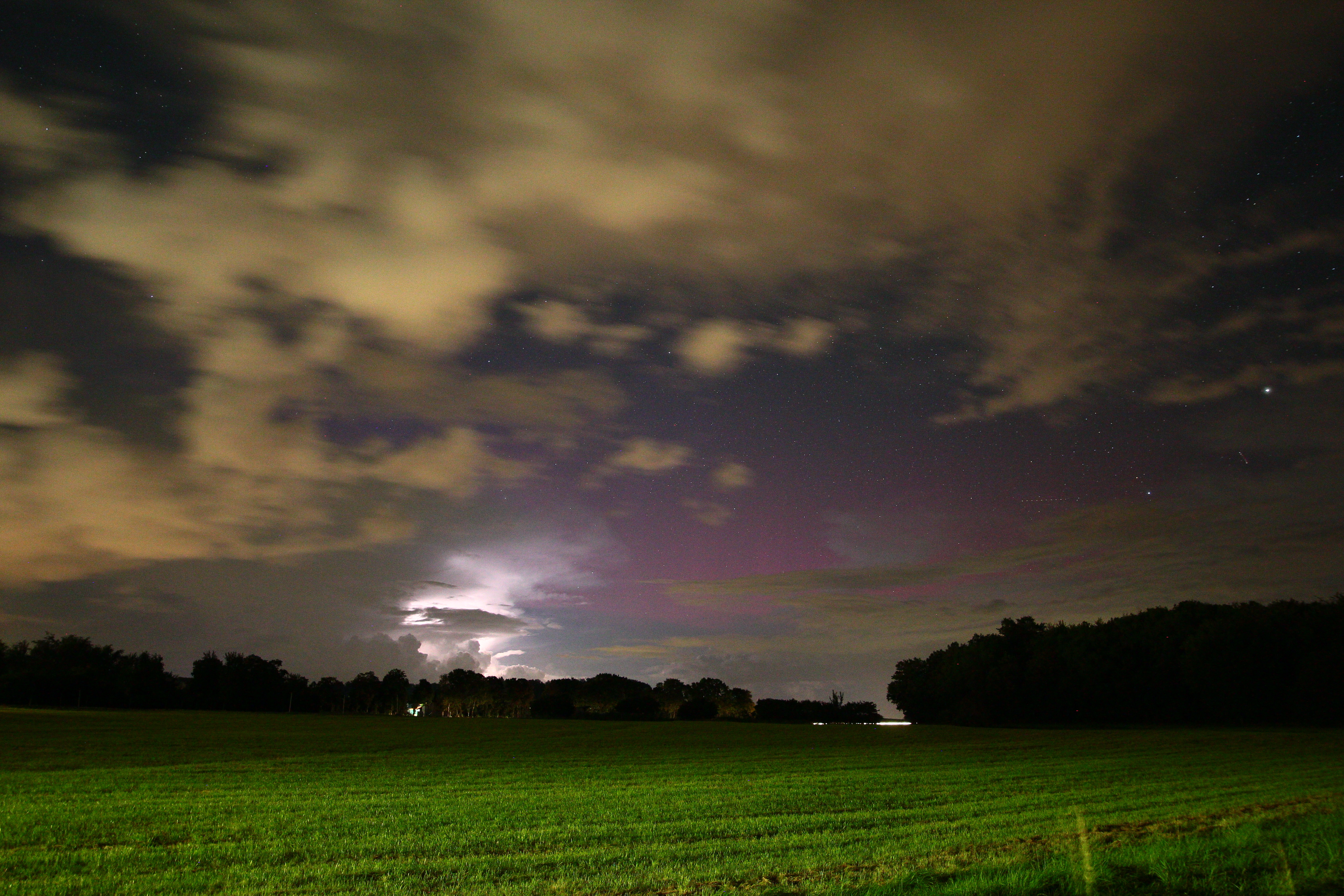 Am 18.09.2023 gelang mir um 22:15 Uhr durch eine Wolkenlücke diese Polarlichtaufnahme in Kombination mit einem Gewitteramboss.