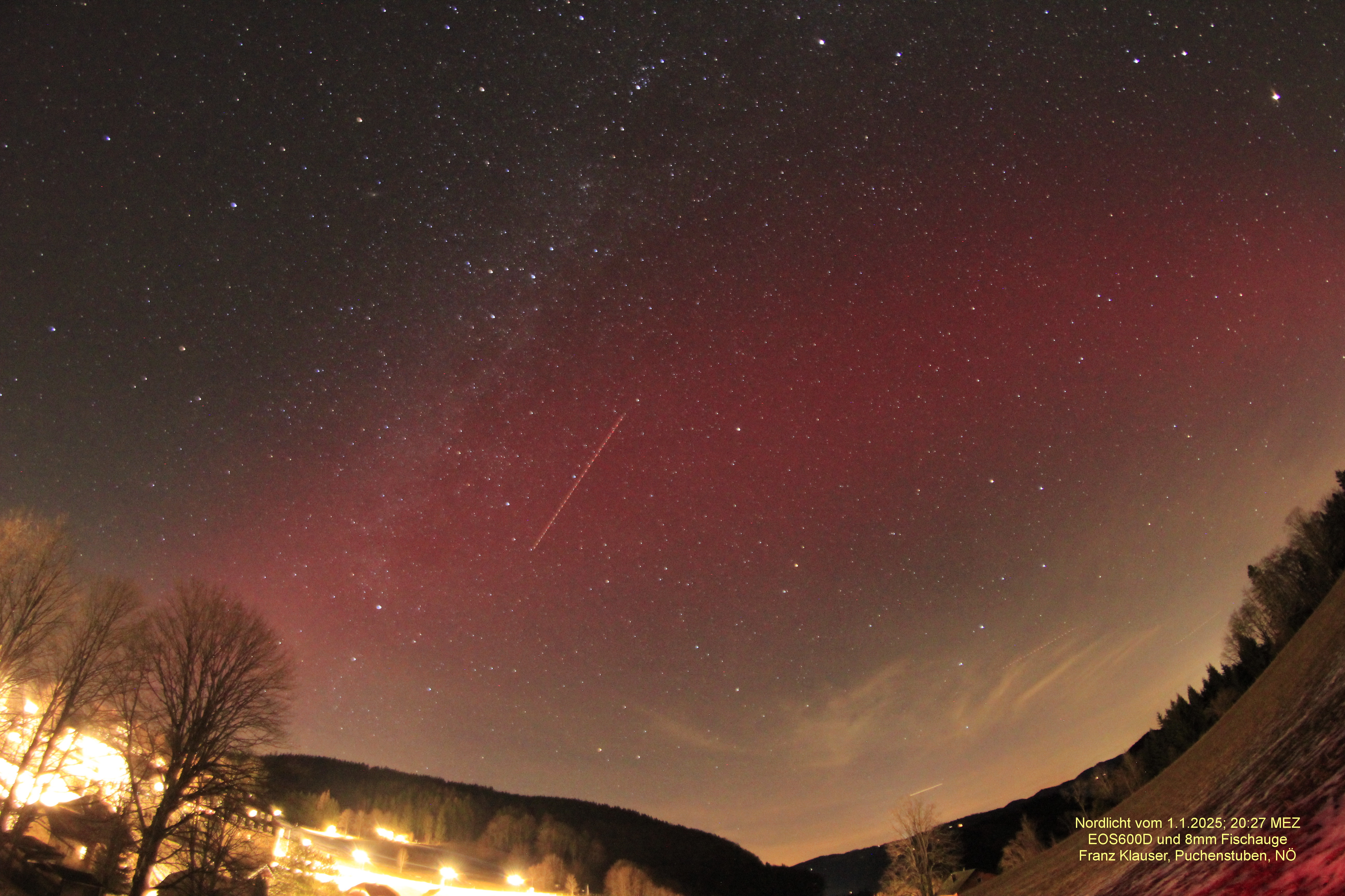 Auch in Österreich waren am 31. Dezember 2024 und am 1. Januar 2025 Nordlichter zu sehen. Für diese Aufnahme habe ich eine Canon 600D zusammen mit einem 8mm Objektiv gewählt. Einzelbild aus einer Serie.