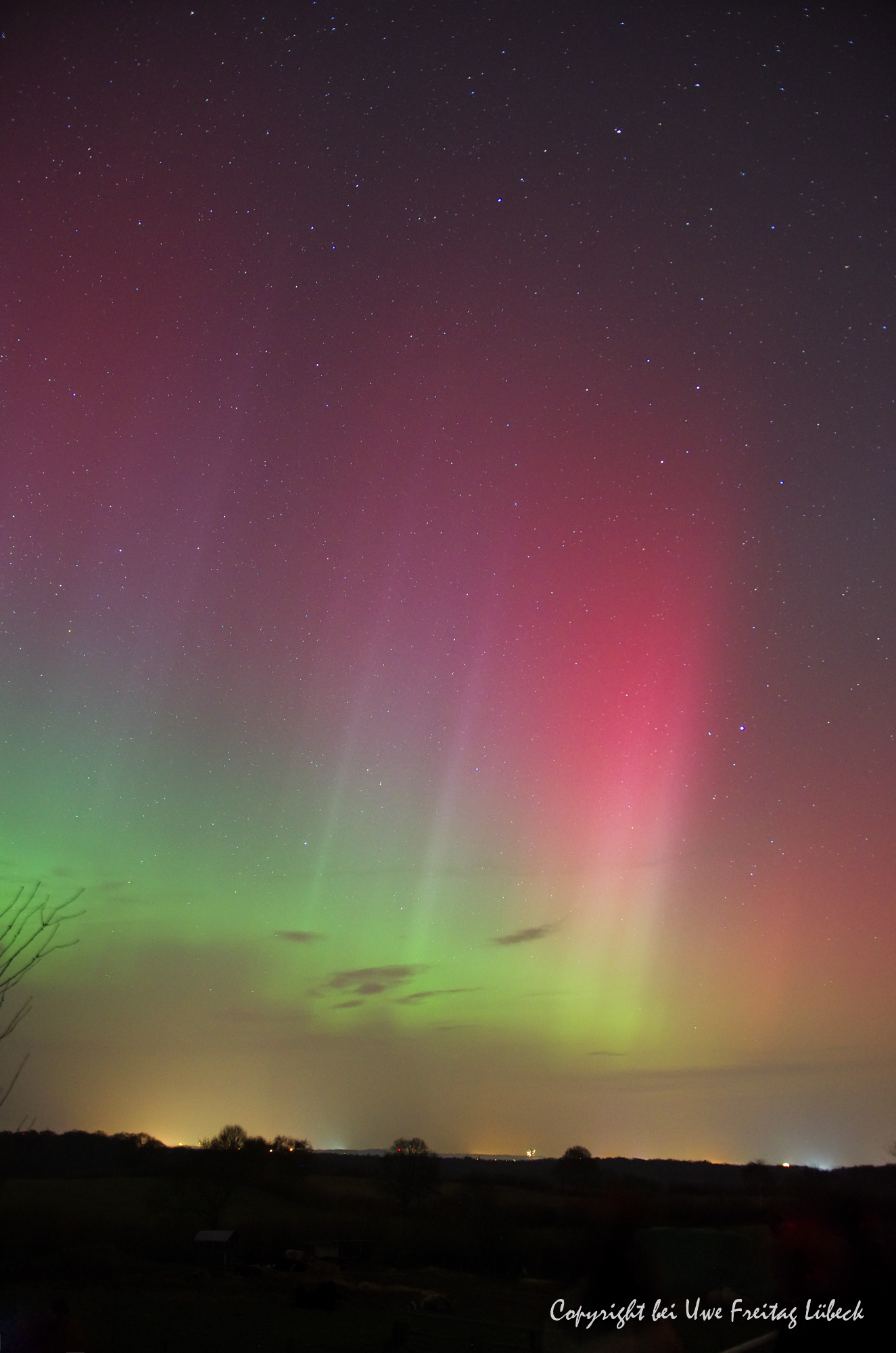 Polarlicht am 17. 03. 2015 bei Lübeck auf dem Pariner Berg bei der Bismarcksäule