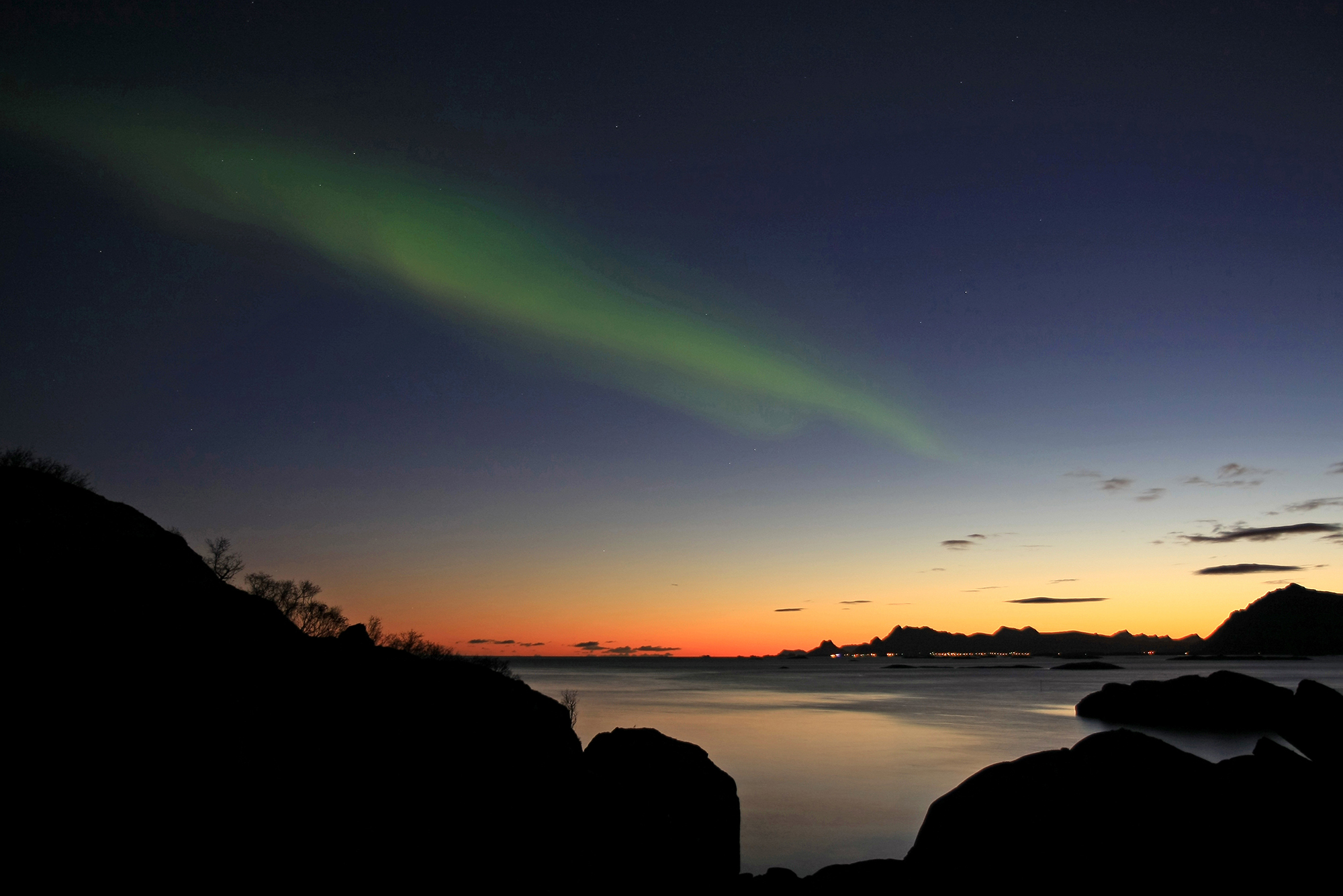 Erste Sichtung grüner Polarlichter bereits in der Abenddämmerung
