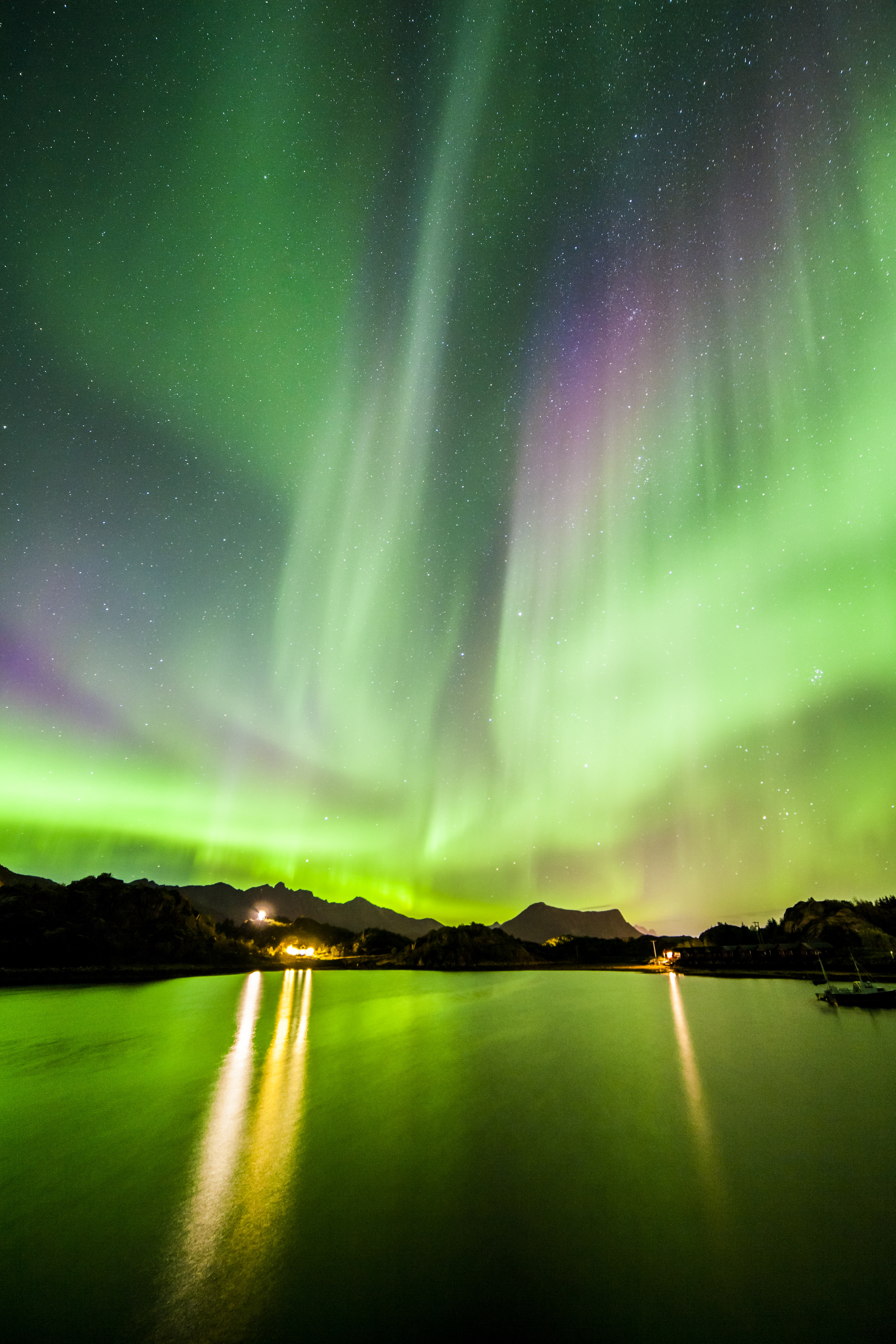 Während eines einwöchigen Lofoten Herbst-Aufenthalts konnten wir mehrmals wunderschöne und intensive Polarlichter über der Insel Austvågøa beobachten. Dank eines dunklen Standortes konnte man die schnellen Bewegungen der riesigen Lichter wunderbar mitverfolgen.