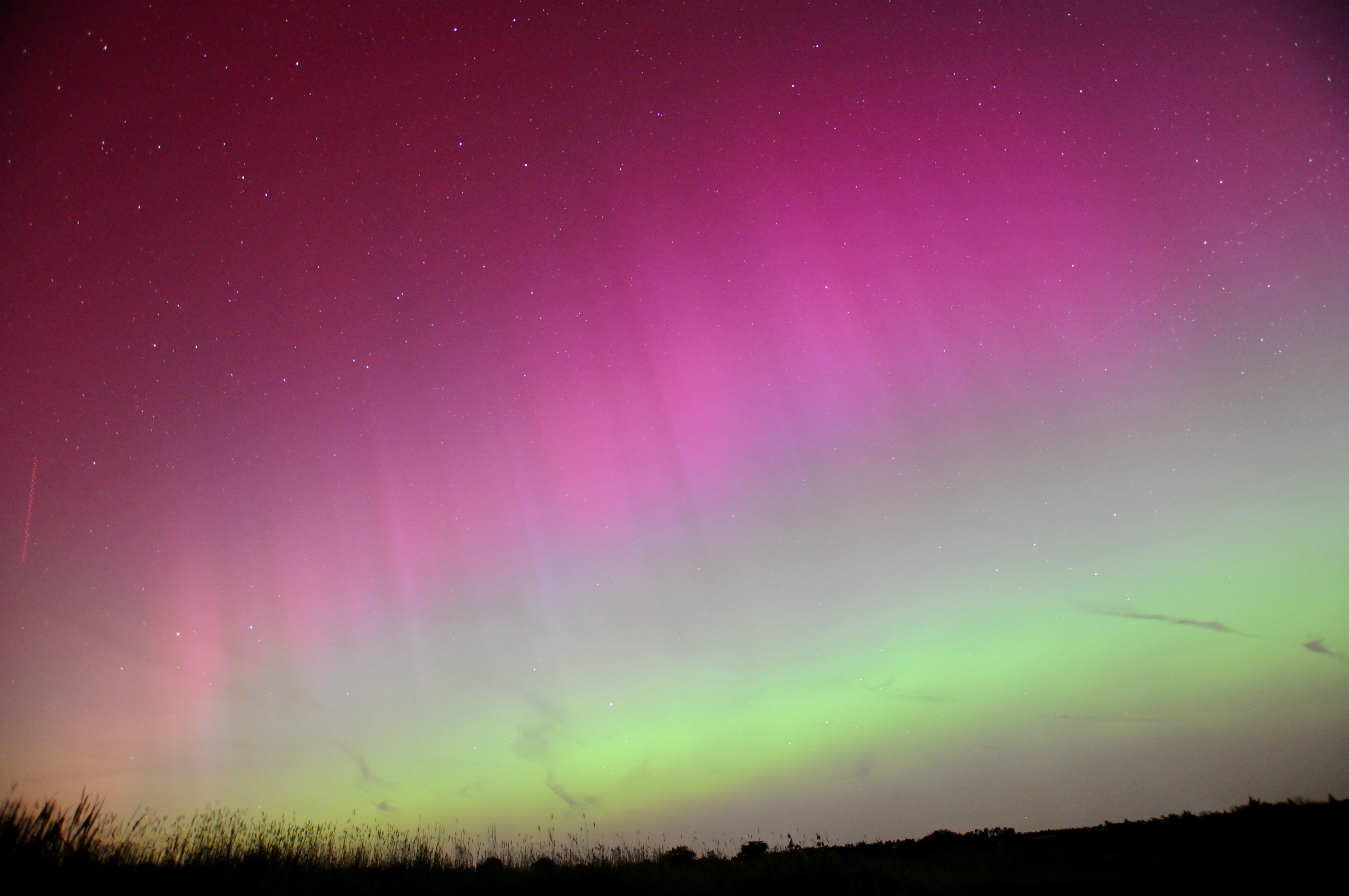 Polarlichter über Neustadt/Aisch am 11. Mai 2024 um 0:20 Uhr. Atemberaubend auch mit bloßem Auge!