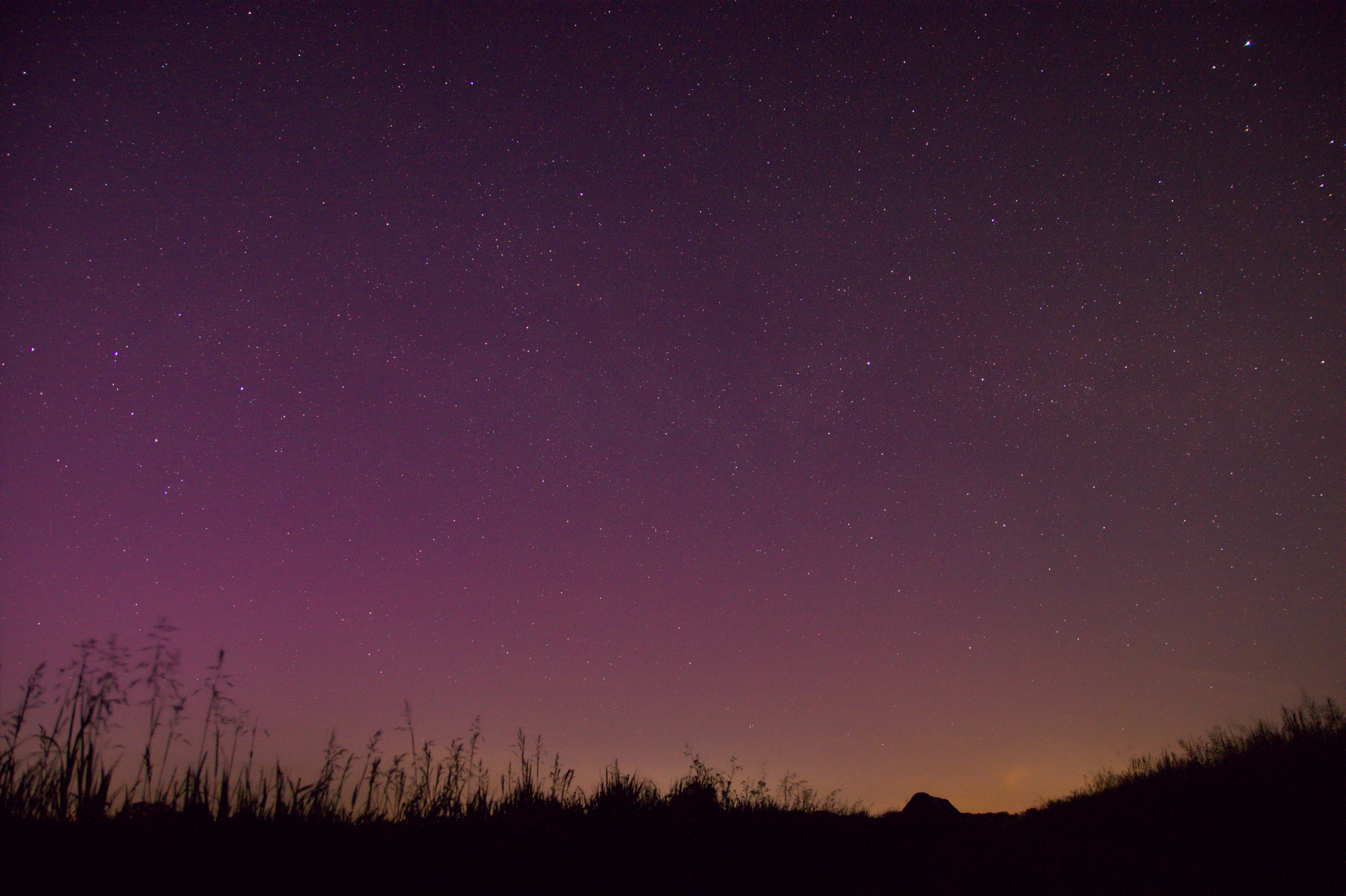 Um halb 12 noch einmal aufs Feld, in der Hoffnung Polarlichter zu sehen. Weit und breit jedoch nichts. Nach einer kurzen Belichtung in Richtung Norden offenbarte sich dann aber ein schwaches, rotes Licht auf dem Display meiner Kamera.