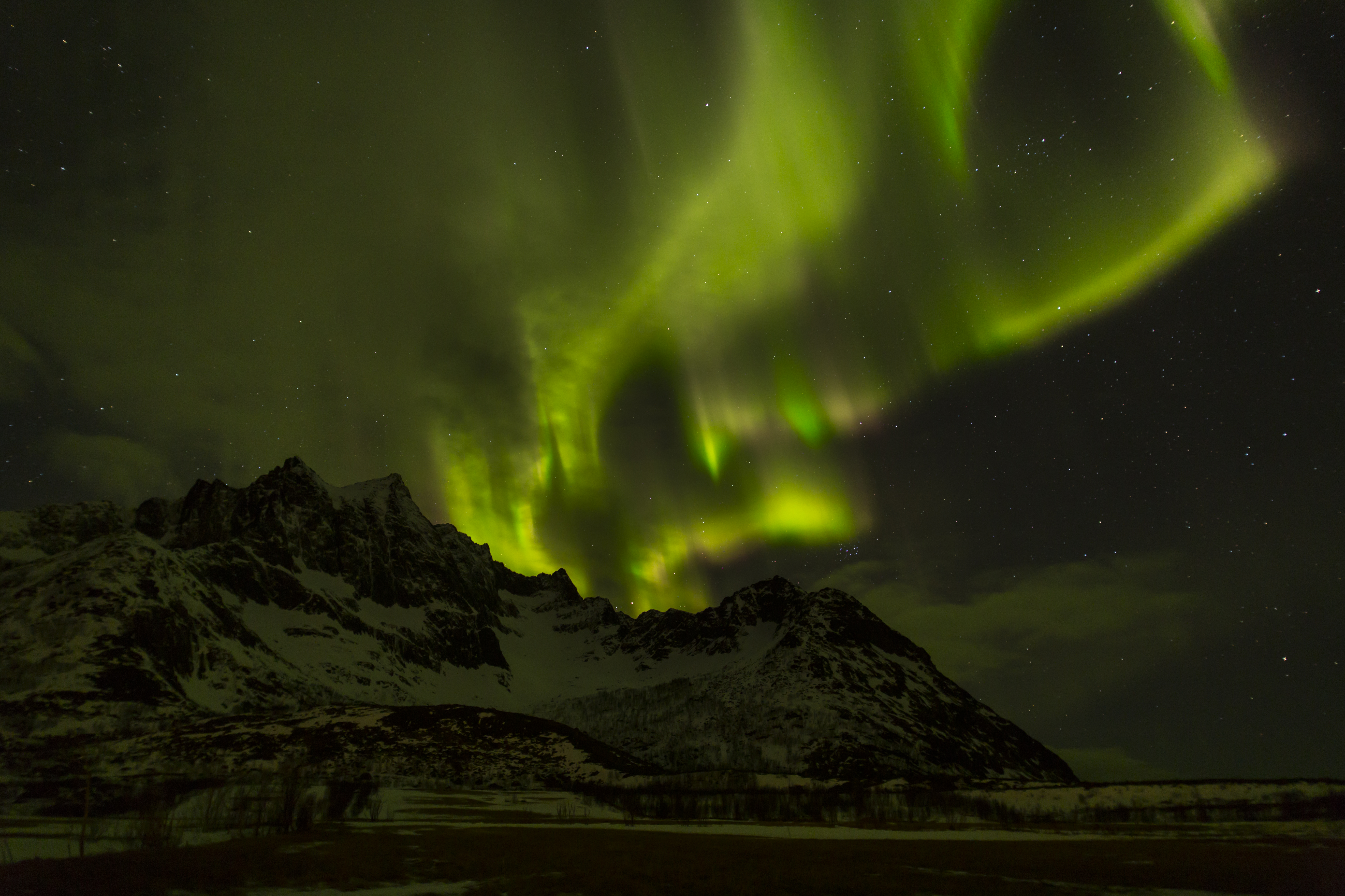Während einer Polarlichtreise im Februar 2018 konnte ich in einer kleinen Gruppe von unserem Standort beeindruckende Polarlichter beobachten. Diese Aufnahme entstand am frühen Morgen des 9. Februar 2018 in Mefjord Brygge auf der Insel Senja in Nord-Norwegen.