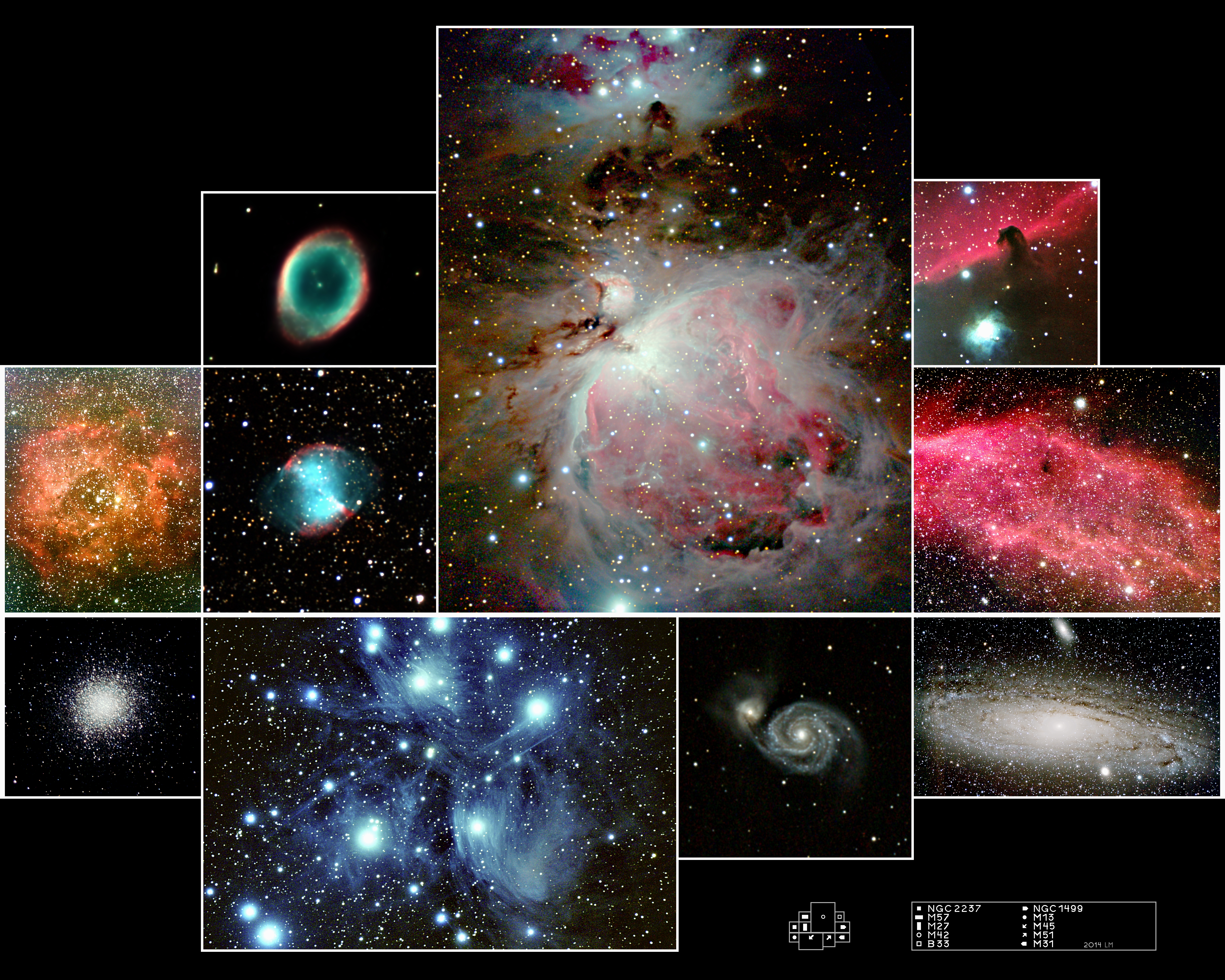 Speziell für Amateure, die Abstriche in die verfügbare Ausrüstung machen müssen, ist es reizvoll, den Anschauungswert von Einzelobjekten durch geeignetes Gegeneinanderstellen dieser fotografischen Objekte zu erhöhen. So können gebräuchliche Ausdruckselemente der "klassischen" Fotografie/Fotografik die Astrofotografie bereichern.