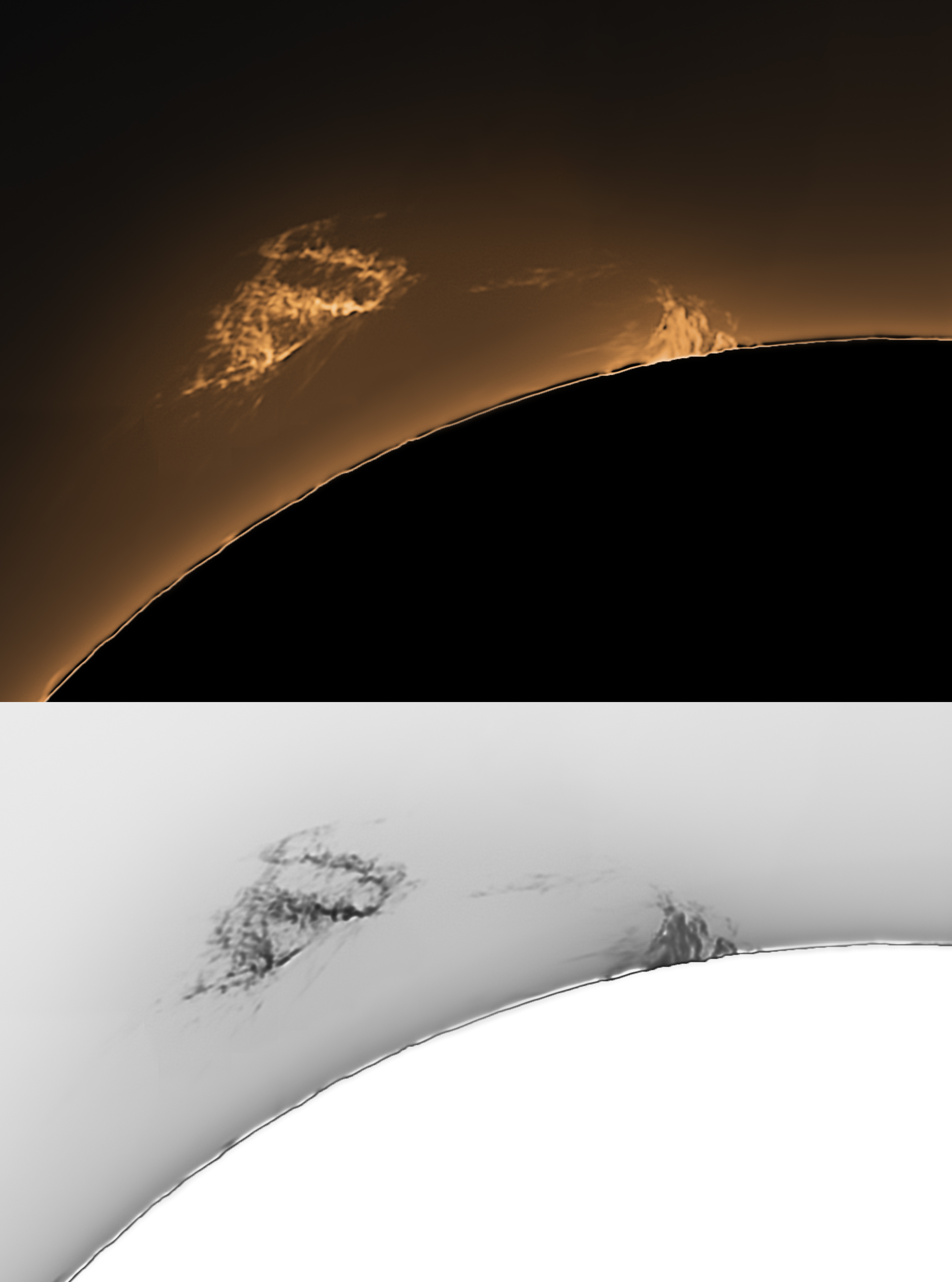 Am Sonntagmorgen zeigte sich diese schwebende Protuberanz. Dank guten atmosphärischen Bedingungen gelang ein ansprechendes Bild dieser lichtschwachen Gasmassen. 1200 von 20000 Bildern wurden verarbeitet.