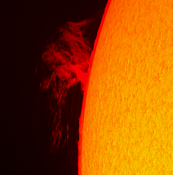 Eine von zwei Protuberanzen, die ich zwischen zwei Wolkengebieten erwischen konnte. Der Himmel war leider nicht ganz frei und hat das Aufnehmen nicht gerade erleichtert ...